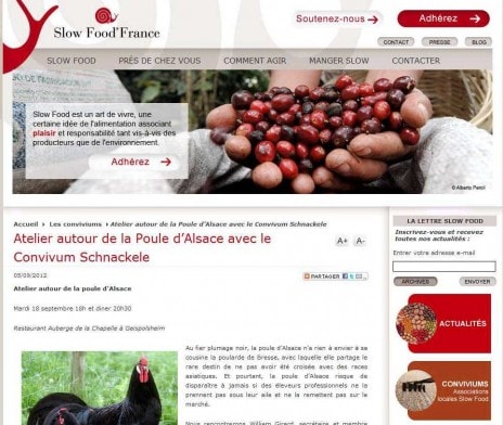 Un événement organisé par l’association Schnaeckele (ou « Convivium Schnaeckele ») émanation locale du mouvement international Slow Food, figure à la Une du site SlowFood.fr