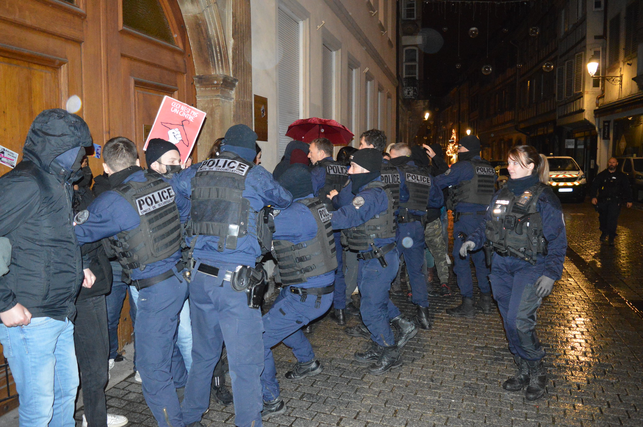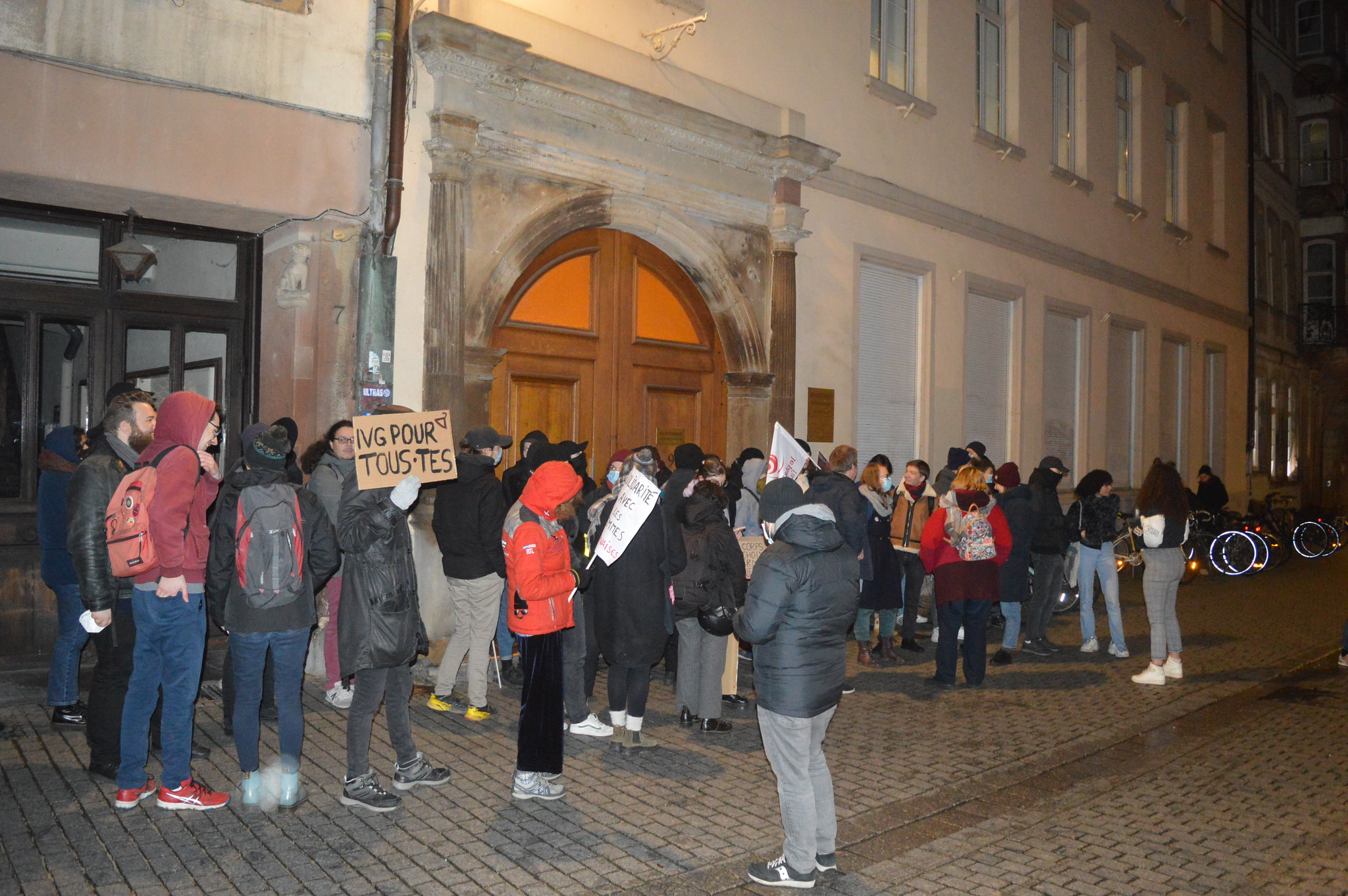 Christelle Wieder, adjointe à la maire de Strasbourg en charge des droits des femmes, soutient la mobilisation : « Il y a eu récemment une conférence contre l’avortement au Parlement européen. Or, nous sommes une ville féministe. Nous ne pouvons admettre que ce mouvement soit aussi décomplexé, se sente autant en confiance. » À 20h45, une quinzaine de personnes qui souhaitaient assister à l’événement sont regroupées de l’autre côté de la rue. Certaines ont appelé la police.