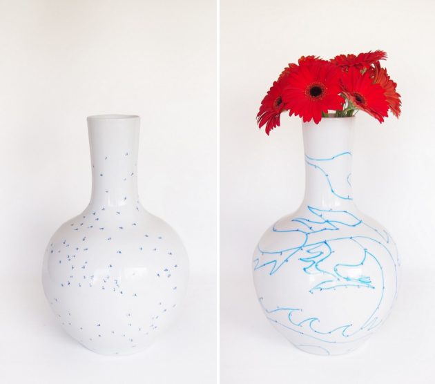 Elle retournera une troisième fois en Asie à titre personnel, à Jingdezhen, grâce à une bourse de la région Grand Est. De ces résidences, elle tire des objets qui revisitent des classiques, en créant d’abord un carnet de bord avec des peintures sur tasse en porcelaine, et en créant un vase et une théière dotés des images traditionnelles chinoises de la carpe et du dragon… qui n’apparaissent que si l’utilisateur relie les points entre eux.