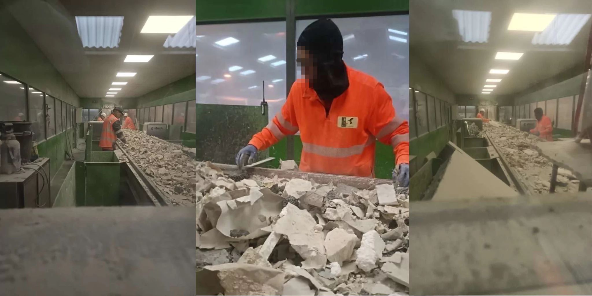 Pourtant, des photos datées de décembre 2024 montrent des employés qui travaillent autour d’une table de tri, toujours sans équipement de protection individuelle. Et la dangerosité liée à l’empoussièrement est encore décrite dans un rapport établi par l’inspection du travail en octobre 2024. Ce dernier évoque un système d’aspiration des poussières défectueux. Interrogé sur ce point, Ritleng Revalorisations assure :