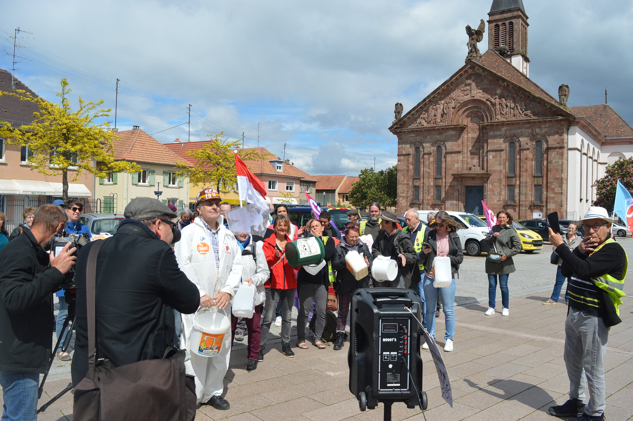 Seaux à la main, ils font la queue pour accéder à une citerne contenant de l’eau potable. Une soixantaine de personnes participent à la mise en scène dystopique, devant la mairie de Wittelsheim ce 10 mai. Elles répondent à l’appel des opposants au projet de Stocamine porté par l’État, qui consiste à enfouir, pour l’éternité, sous la nappe phréatique, 42 000 tonnes de déchets contaminés à l’arsenic, au cyanure ou encore à l’amiante. L’entrée du site de stockage, une ancienne mine de potasse, se trouve dans la même commune.