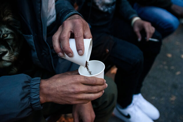 Sur la petite place nichée derrière la porte du Fossé-des-remparts, ils sont cependant une demi-douzaine d’hommes à accepter les cafés proposés par l’équipe de la maraude. Parmi eux, Mohammed Ali, 34 ans, arrivé à Strasbourg il y a trois ans et au camp du Glacis depuis un an et demi. « Nous sommes une trentaine actuellement », reconnaît-il du bout des lèvres. « Le campement s’organise en “quartiers” : là, des ressortissants de pays d’Afrique de l’Est et du Moyen-Orient, là, d’Afghanistan, ici, d’Afrique de l’Ouest… »