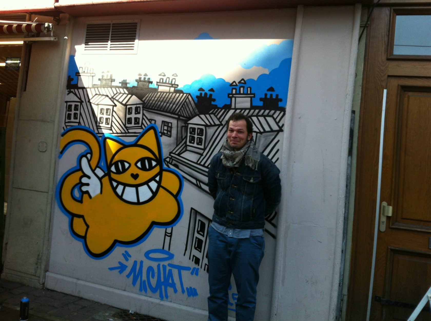 « Une année, Monsieur Chat avait peint ce mur, sans autorisation, à la hâte. Un voisin s’est plaint auprès des services de la Ville, qui l’ont effacé. Quelques mois plus tard, près du musée d’art moderne, j’ai reconnu Monsieur Chat. Il était en train de graffer. Je me suis approchée de lui, je voulais lui demander s’il voulait bien revenir graffer sur notre mur. Mais lorsqu’il m’a entendu arriver, il est parti en courant, il pensait que c’était la police. »