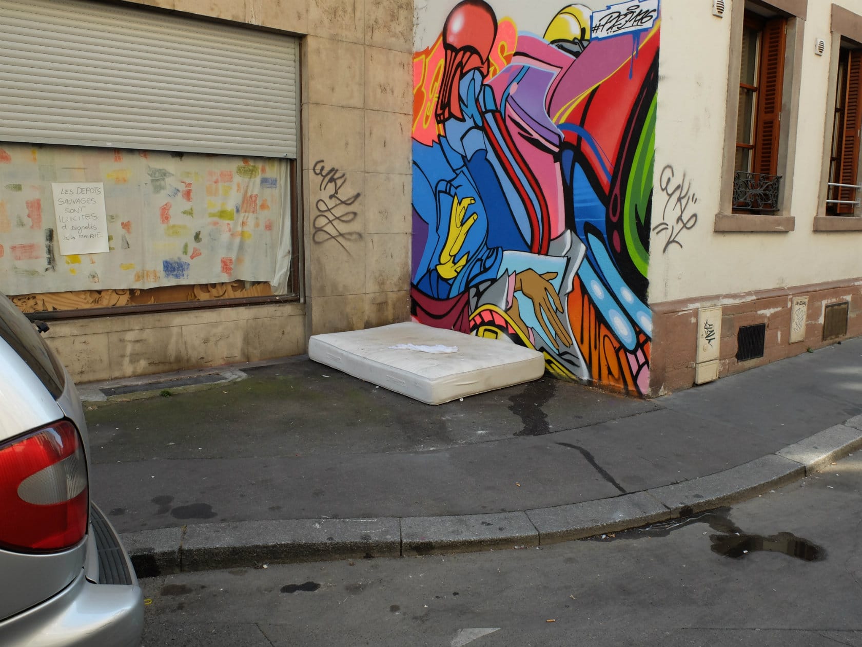 « Le street art est arrivé en France au début des années 2000 mais il commence à être vraiment reconnu depuis 2010. A une époque, la municipalité de Strasbourg a eu une politique extrêmement répressive, en effaçant de nombreux graffitis et en verbalisant leurs auteurs. C’est pour cela que la plupart ont arrêté de peindre dans le centre-ville. Pénalement, comme je peignais uniquement sur des murs dégradés, et des choses figuratives, je ne craignais pas grand-chose. Parfois, la police m’arrêtait mais je n’avais pas d’amende. Et début 2016, cette politique a changé. Depuis, j’ai une autorisation pour repeindre les transformateurs électriques et la Ville me propose parfois, comme pour d’autres street artistes, certains murs à peindre. »