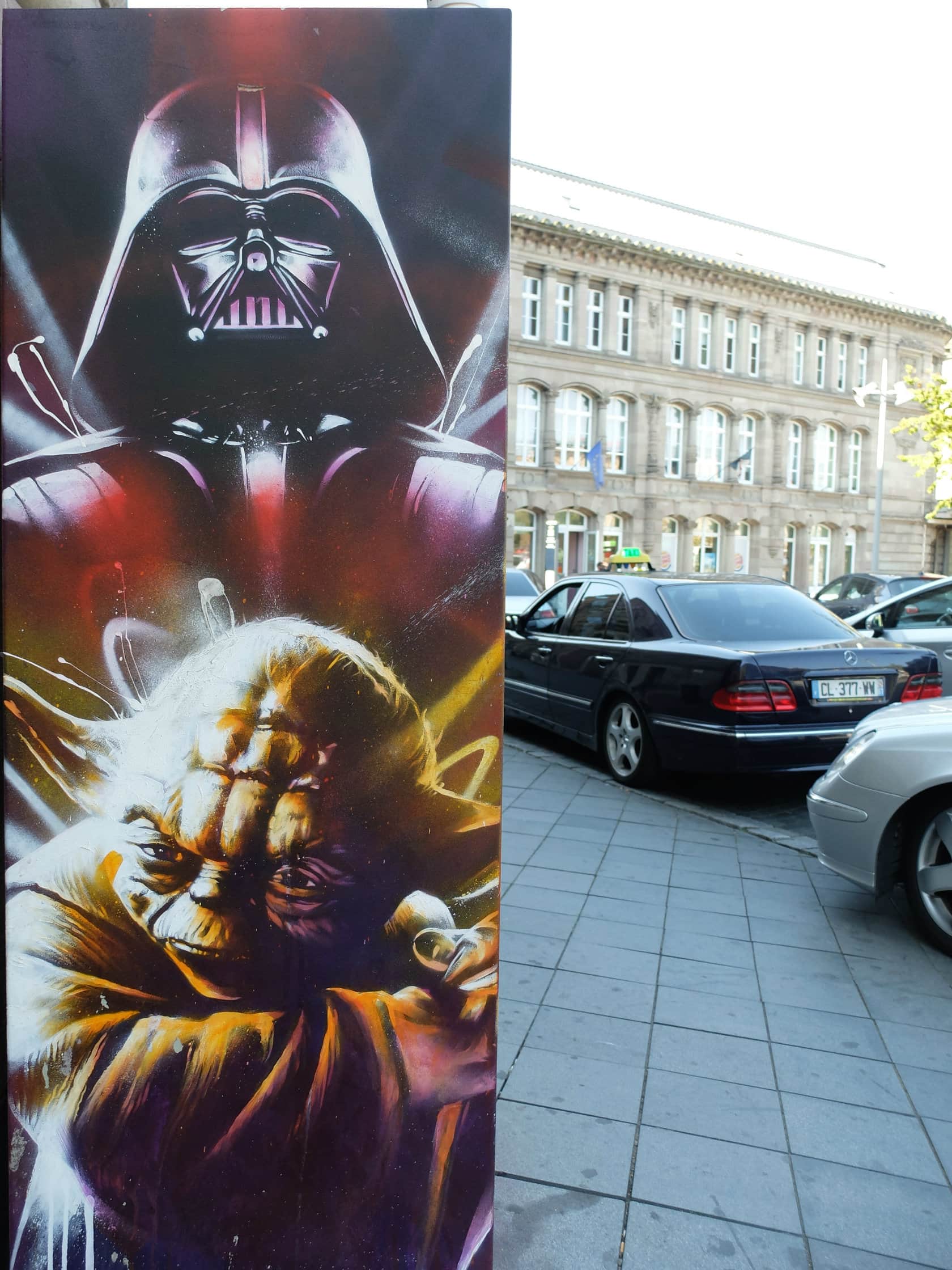 Comme souvent, ce street artiste parisien, qui utilise du papier-collé, joue avec les éléments d’architecture entourant ses créations. Ainsi, il a imaginé des personnages en train de dormir, avec leurs bagages, pour la façade de cet hôtel. Ses créations de street art, à retrouver sur son site internet, soulignent souvent, de manière poétique, l’absurdité de situations du quotidien. Elles rappellent parfois celles de Banksy, figure emblématique du street art. Dernier élément à savoir sur Charles Levalet : cet enseignant agrégé d’arts plastiques le jour, street artiste la nuit, a étudié… à Strasbourg.