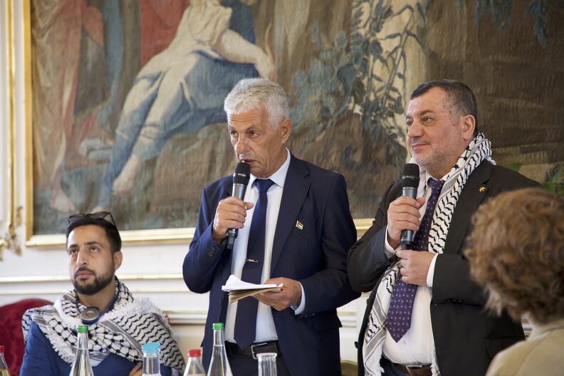 Après que quelques élus ont pris la parole, parfois en français, parfois en anglais, parfois en arabe, les échanges formels se terminent par une dernière intervention d’Abdelfattah Abusrour :