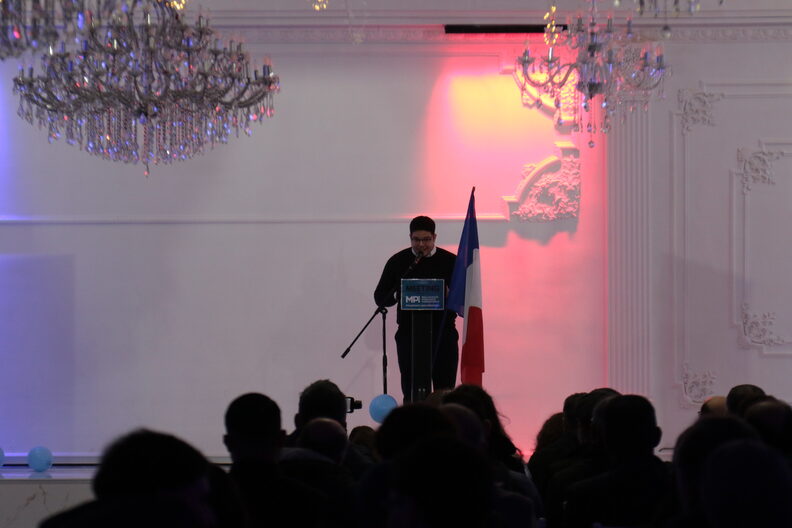 Sur scène, Chaima El Amri, en charge des droits des femmes au MPI, chauffe la salle. Fahad se fait attendre. Avant lui, plusieurs figures du mouvement se succèdent au micro : Jean-Gaël Corniche, responsable d’études chez CDC Habitat, Zekeria Dursun, chef d’entreprise et Medine Dursun, agente immobilière. Tous racontent la même rupture. L’impossibilité de se reconnaître dans les partis traditionnels, jugés « poussiéreux ». « Et pourtant, on a été approché par des politiques de tous bords. Mais que ce soit des partis de gauche, ou au centre, leur discours se confond avec l’extrême droite », raconte Jean-Gaël Corniche, directeur de campagne et cofondateur du MPI.