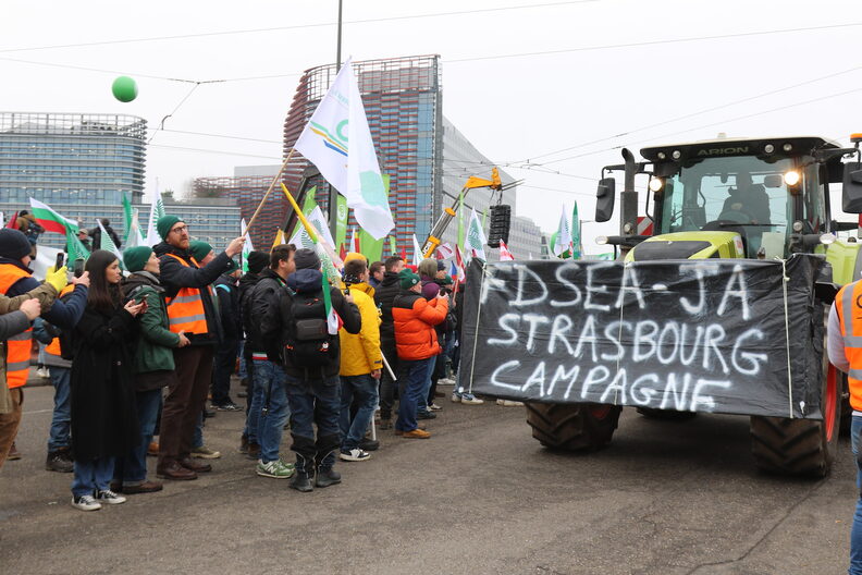 « Quand je me suis installé, en 2021, j’ai dû acheter un tracteur, des parts sociales…Sur une exploitation de 30 hectares, ça commence déjà à faire cher. J’ai encore 250 000 euros à rembourser », soupire Geoffrey Fikuart, éleveur à Lorquin, dans le département de la Moselle. Cet agriculteur de 38 ans, syndiqué à la Coordination rurale, possède 22 vaches destinées à l’élevage de veaux, 60 brebis et 7 truies. Il fait partie des quelques 5 000 agriculteurs venus de plusieurs pays d’Europe pour manifester devant le Parlement européen contre le traité de libre échange avec les pays du Mercosur mardi 20 janvier.