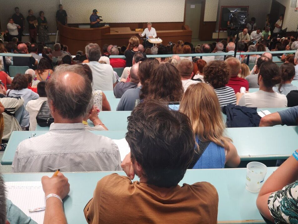 Comme en période scolaire, les couloirs de la fac grouillent à chaque intercours de militants, pressés par le temps et ne disposant que de quelques minutes pour trouver leurs amphithéâtres respectifs, rebaptisés pour l’occasion du nom de figures du communisme.