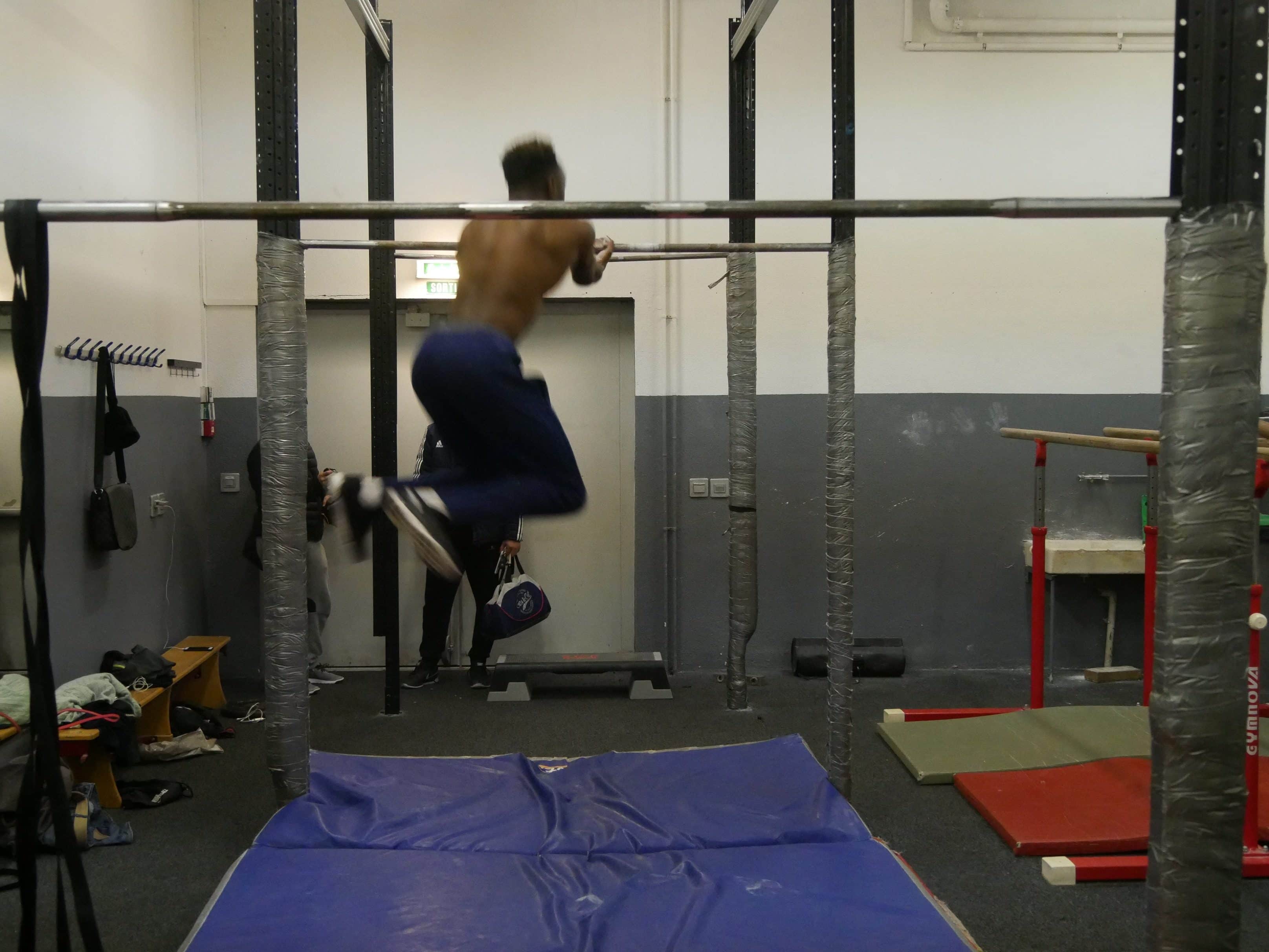 L’athlète termine sa série par un bond sur les tapis rouges et bleus. Il atterrit au sol les pieds joints, les deux bras en avant. Jean est parfaitement synchronisé avec le rythme de la trap, un mélange de rap et d’électro. Grâce au club, cet habitant de l’Elsau participe à des compétitions dans toute l’Europe. Il résume son parcours dans le street workout :