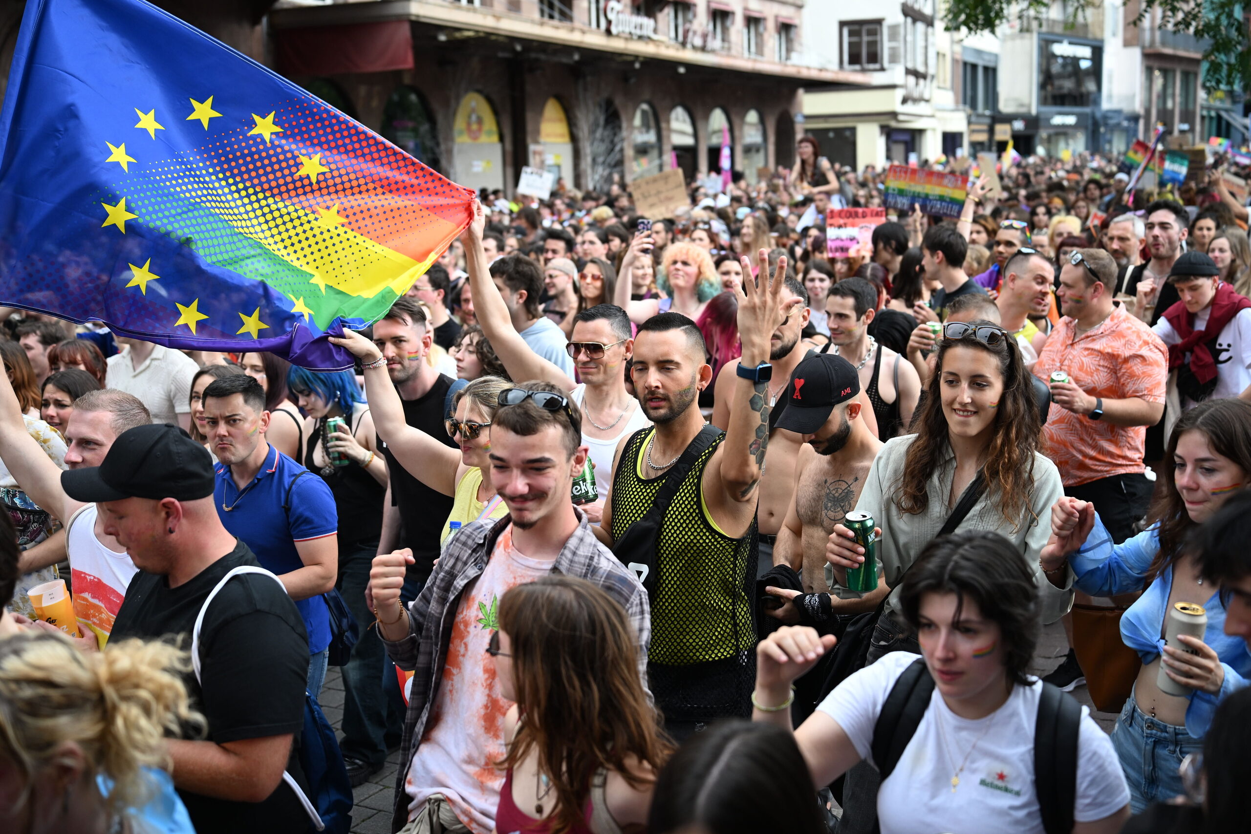 La maire de Strasbourg, Jeanne Barseghian (Les Écologistes), a pris la parole avec un discours offensif rappelant le danger que fait peser l’extrême droite sur les droits des minorités sexuelles. Elle a rappelé que Strasbourg avait été libéré du « joug nazi il y a 80 ans ».