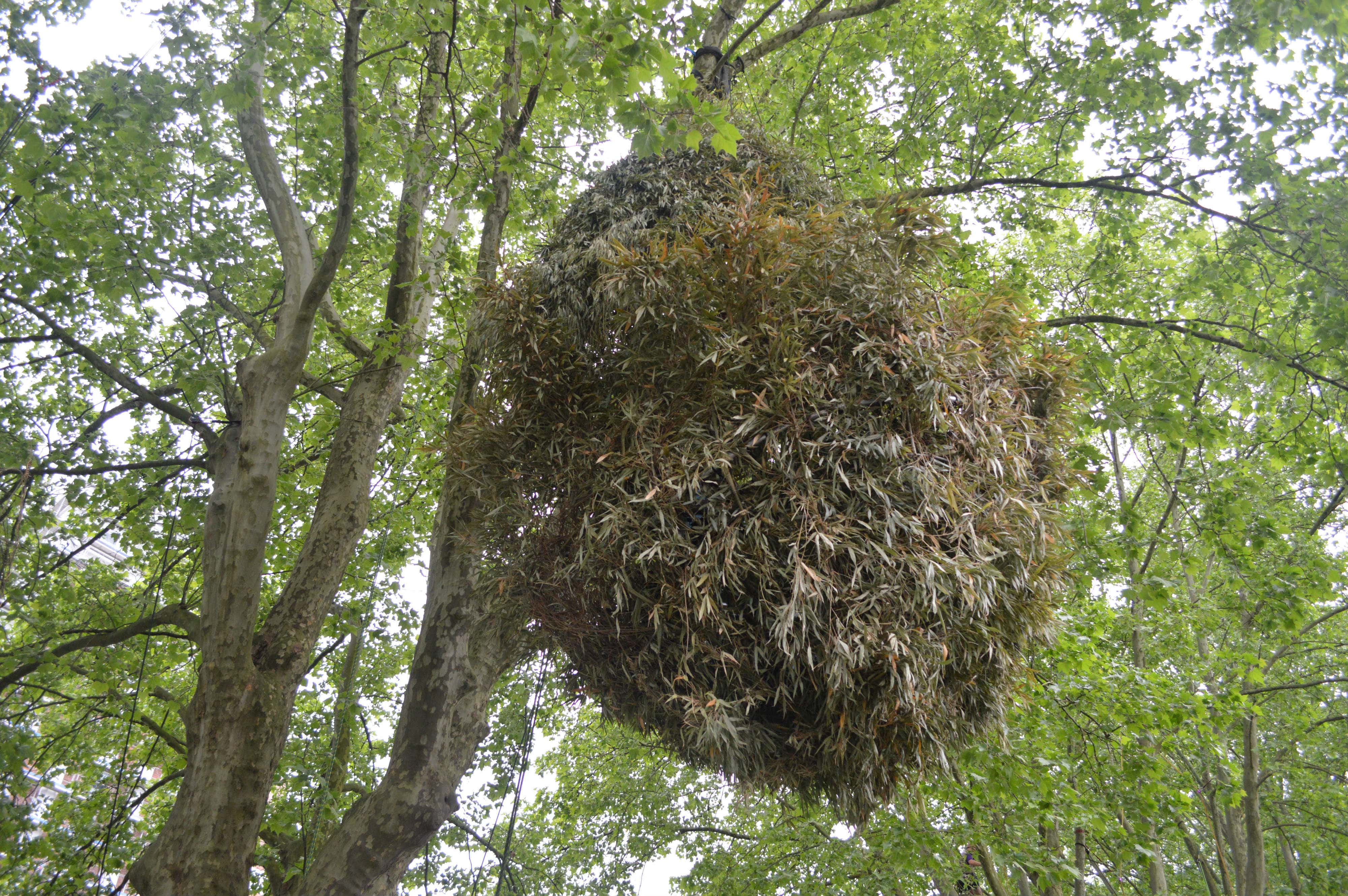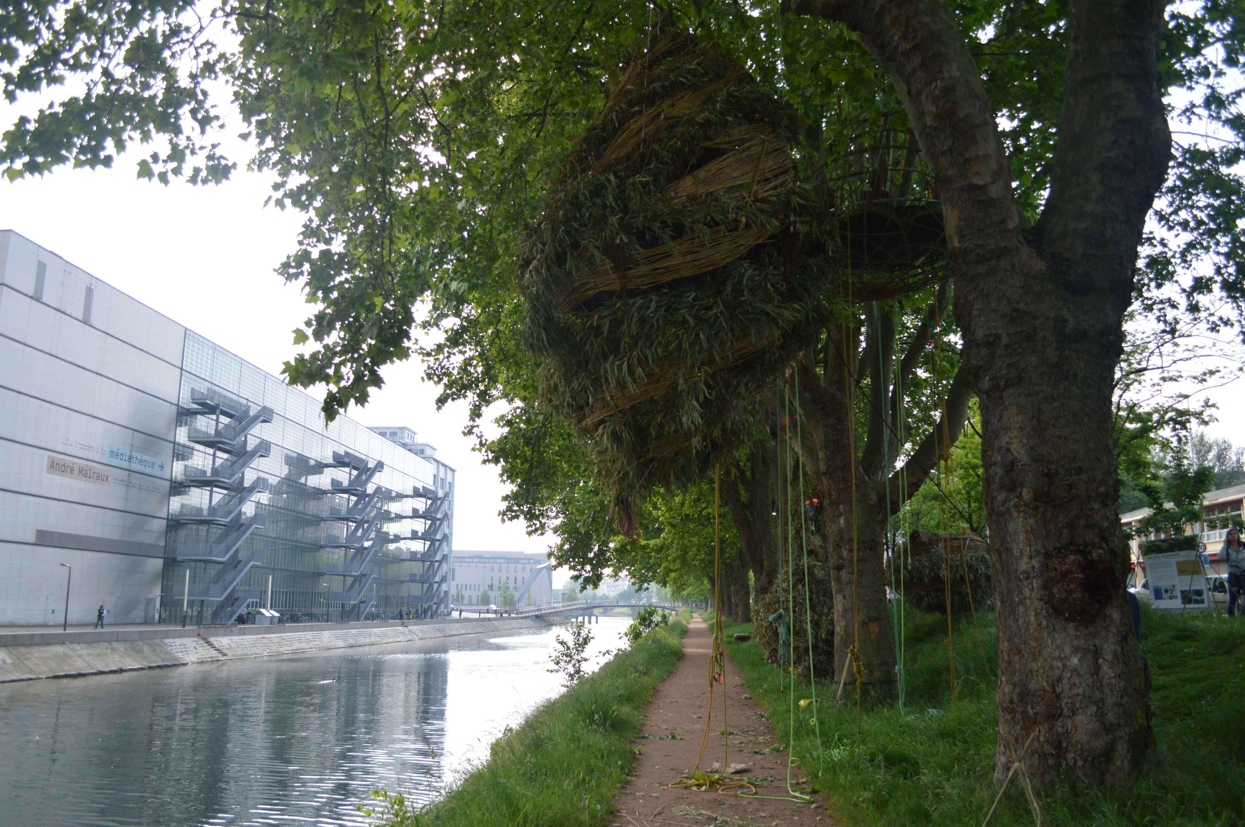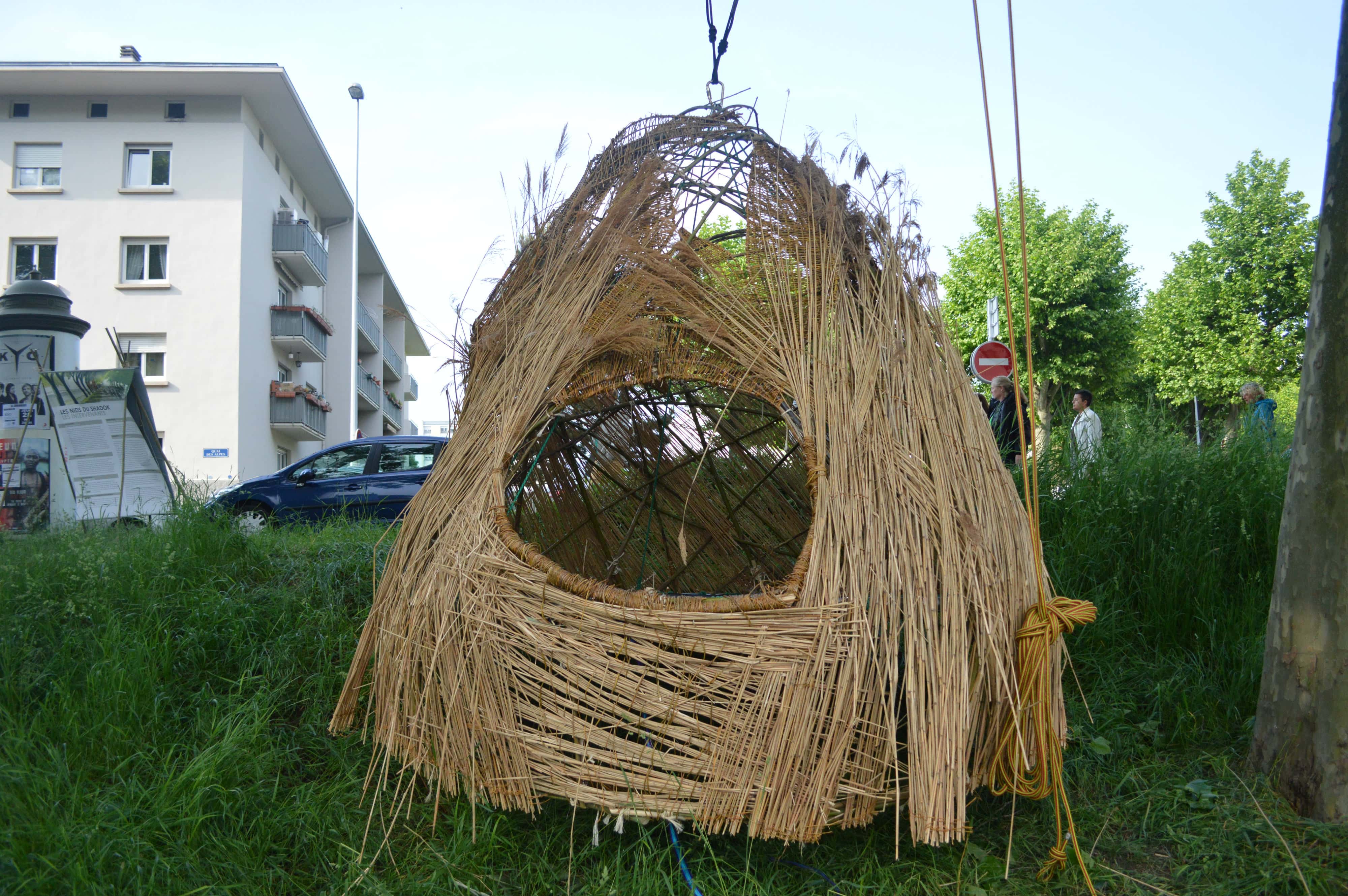 Les étudiants en architecture ont dessiné et réalisé ces nids pendant une période de six mois. Ils ont du respecter quelques contraintes dont l’utilisation de matériaux naturels et un poids maximum par nids de 50 kg. Deux artistes vanniers Erik Barray et Richard Le Guezennec ont appris aux étudiants à tresser des fibres végétales et l’entreprise de paysagisme Thierry Muller a mis à disposition le matériau et ses locaux.