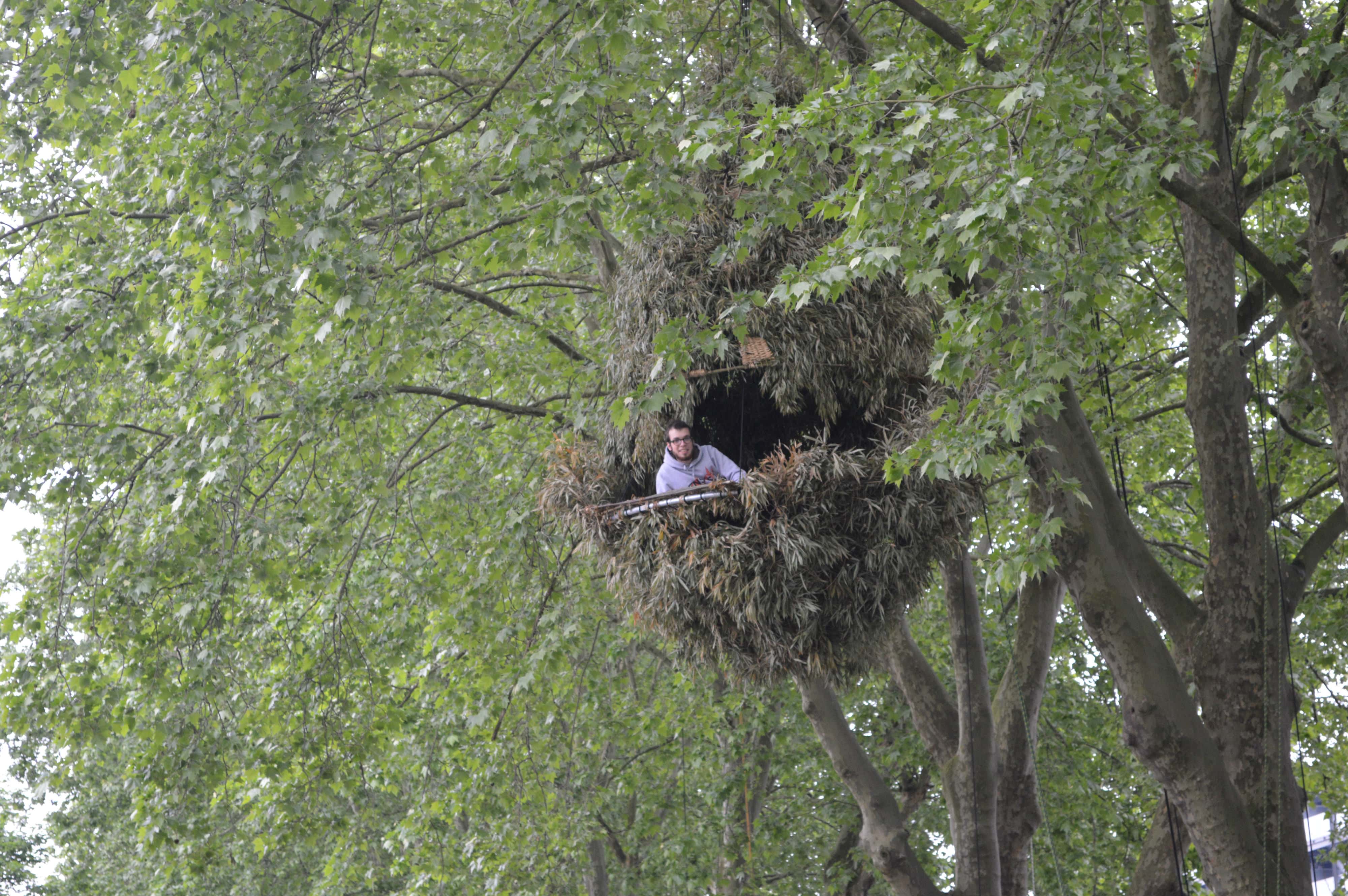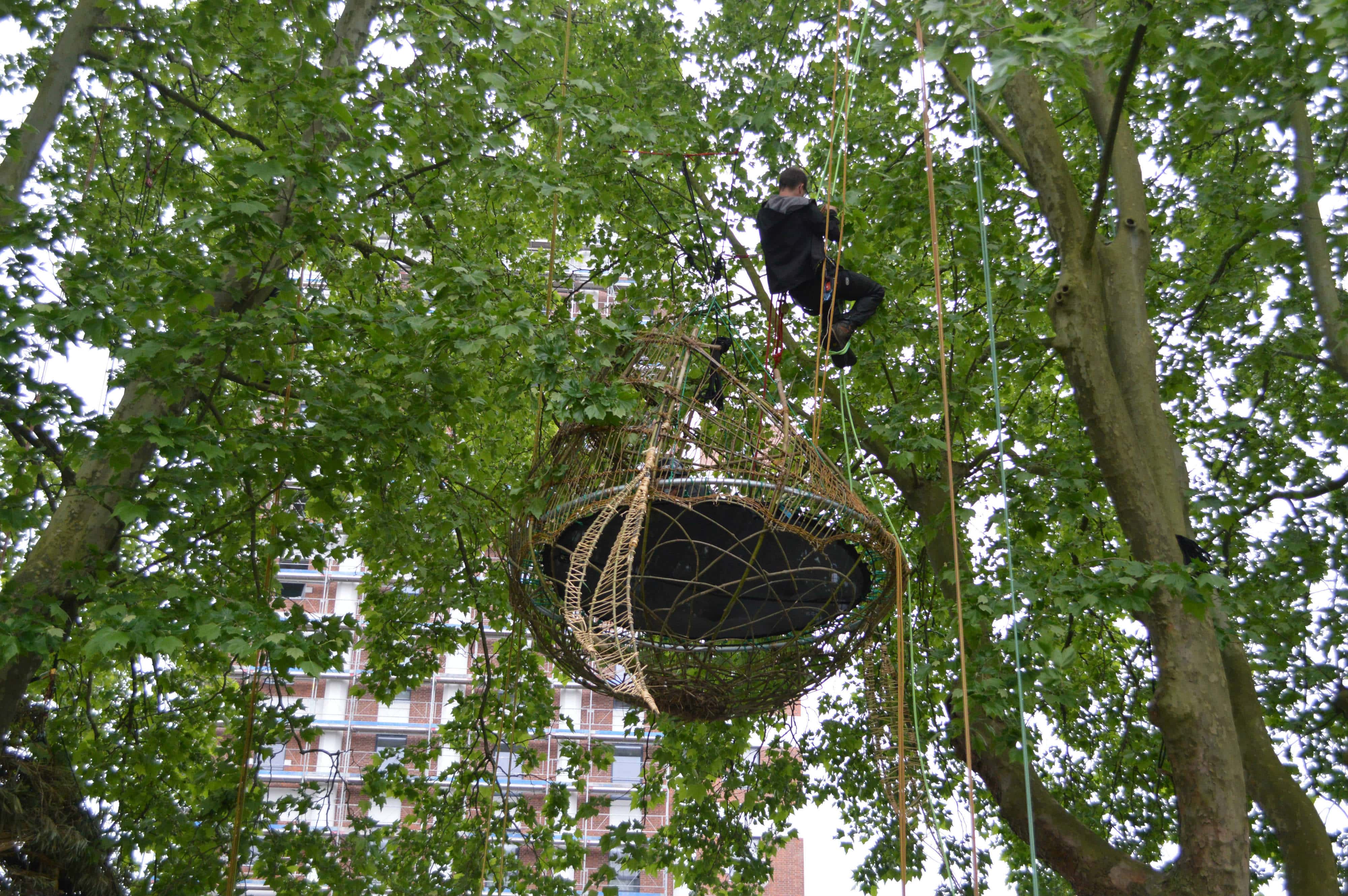 Le public peut monter gratuitement dans ces nids à partir du samedi 16 mai 14h jusqu’au lundi 18 mai. Les nids sont alors descendus, avant d’être remonté avec ses occupants. Une danseuse de l’association Motus Modules proposera une chorégraphie aérienne et servira du thé.