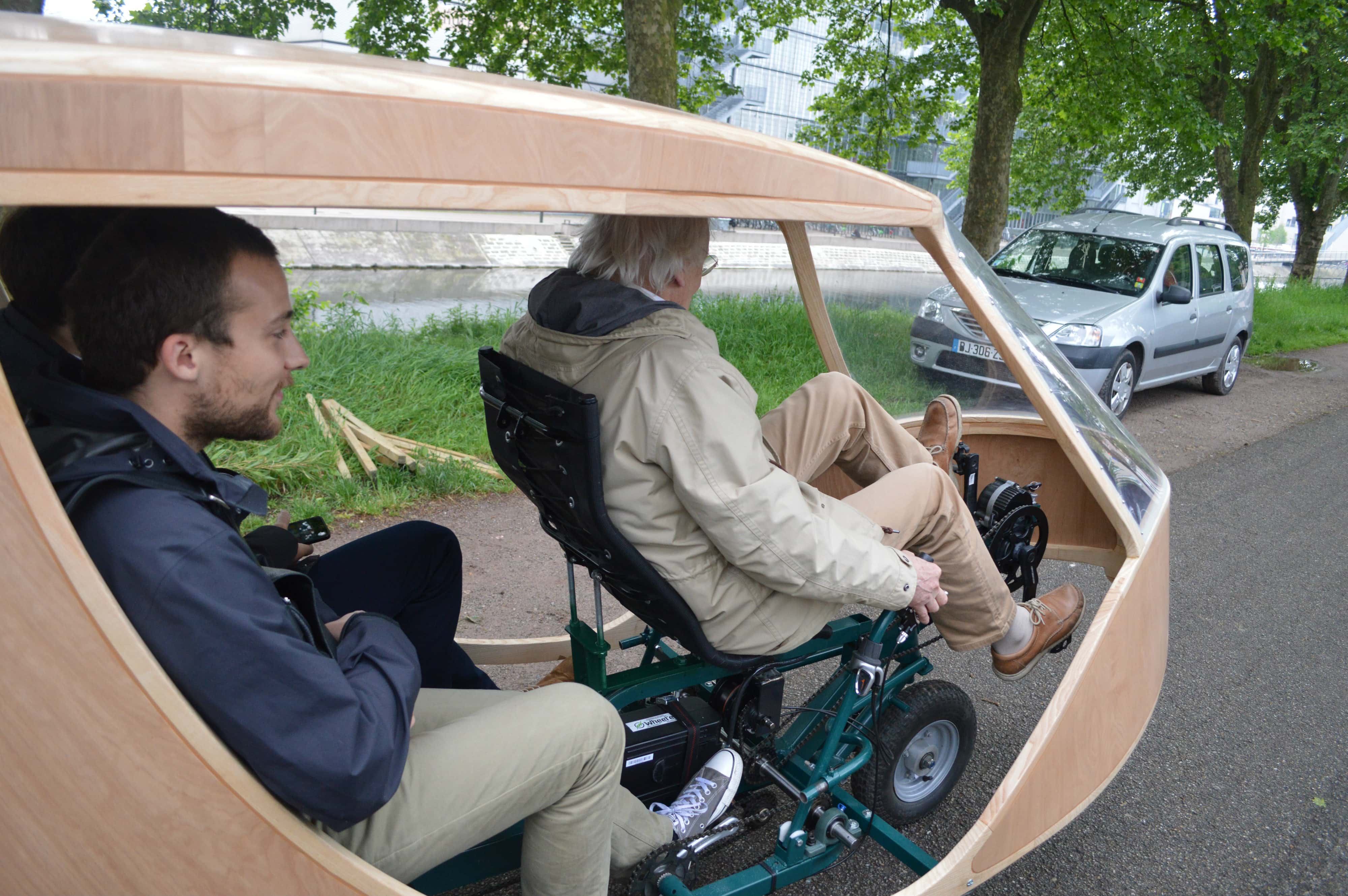 Le tricyclopolitain est un tricycle en bois électrique imaginé par Luc Schuiten et dont le châssis a été construit par la start-up strasbourgeoise Wheel’e. Construit à partir de matériaux produits en France, ce tricyle au design végétal a mis un mois à être fabriqué et a coûté 6 500 euros.