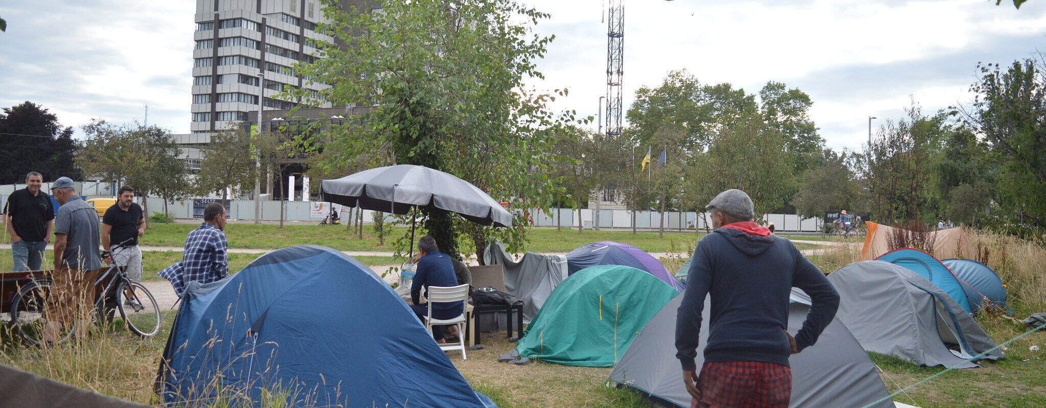 Un collectif a dénoncé mercredi 14 septembre la situation humanitaire au campement de demandeurs d'asile de la place de l'Étoile. Il demande à la Ville de court-circuiter la Préfecture et "prendre ses responsabilités et de réquisitionner d'urgence des bâtiments" pour loger les sans-abris. Plus de cent personnes, dont des malades et une quarantaine d'enfants, subissent l'humidité et la proximité avec les rats.