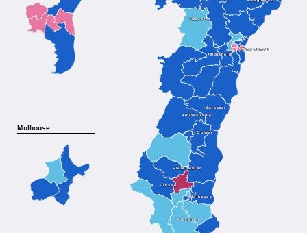EN DIRECT. – Malgré la forte poussée du vote frontiste lors du premier tour des élections municipales, le FN n'est pas parvenu à installer un seul élu dans les conseils départementaux alsaciens. La gauche installe quatre binômes à Strasbourg et en sauve un seul dans le Haut-Rhin, à Wittenheim. Retrouvez ici même tous les résultats dès 20h.
