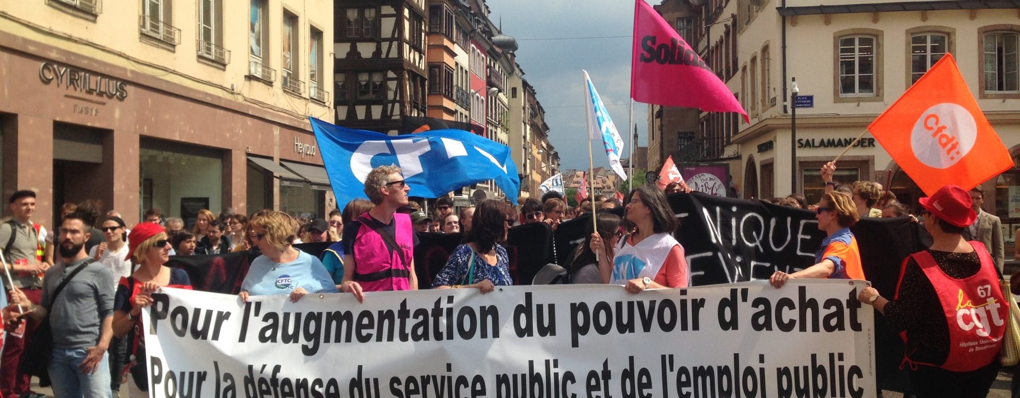 Ce mardi 22 mai, de nombreux syndicats strasbourgeois participent à la grève nationale lancée par l'intersyndicale Unsa, FO, CGT, FSU, Solidaires de la fonction publique. À Strasbourg, une manifestation est prévue au départ de la place Kléber à 14h. De nombreuses perturbations sont à prévoir dans les écoles.