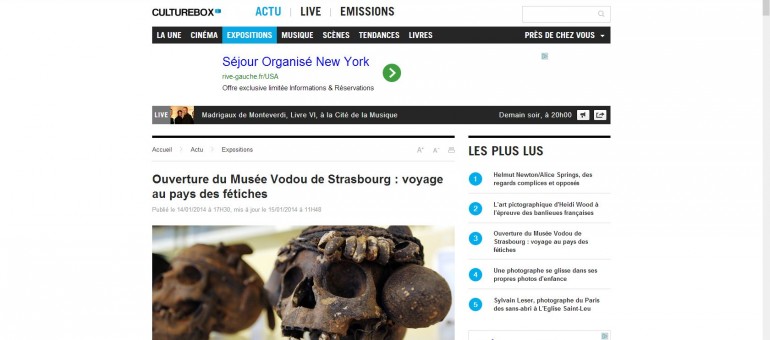 Il y a 12 ans « Hémisphères vodous » : un parcours d’art contemporain Tandis qu'un musée vodou a ouvert ses portes il y a peu, à Strasbourg, plusieurs institutions publiques et galeries privées s'associent le temps d'un événement singulier. "Hémisphères vodous" refuse la mise en boîte. L’événement brise les cadres, dépasse la simple exposition d'art contemporain. blogs