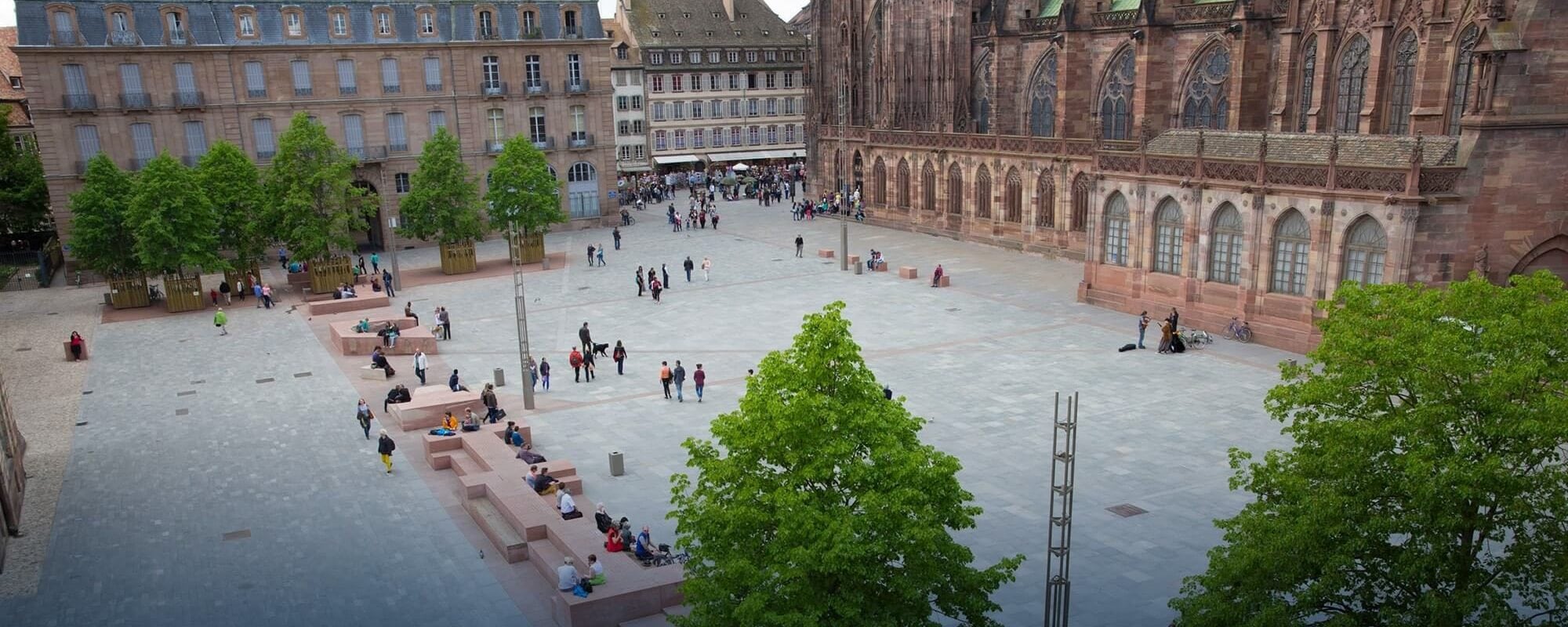 Les aménagements qui ont fait débat (3). Le réaménagement de la place du Château, entre la cathédrale et le palais Rohan, a naturellement mobilisé les Strasbourgeois. Résultat : le projet initial, qui avait dégagé la vue et les arbres, a été amendé pour réintroduire de la verdure et de l'ombre. Mais sur les places de parking, la ville a tenu bon. Résultats visibles à la rentrée.