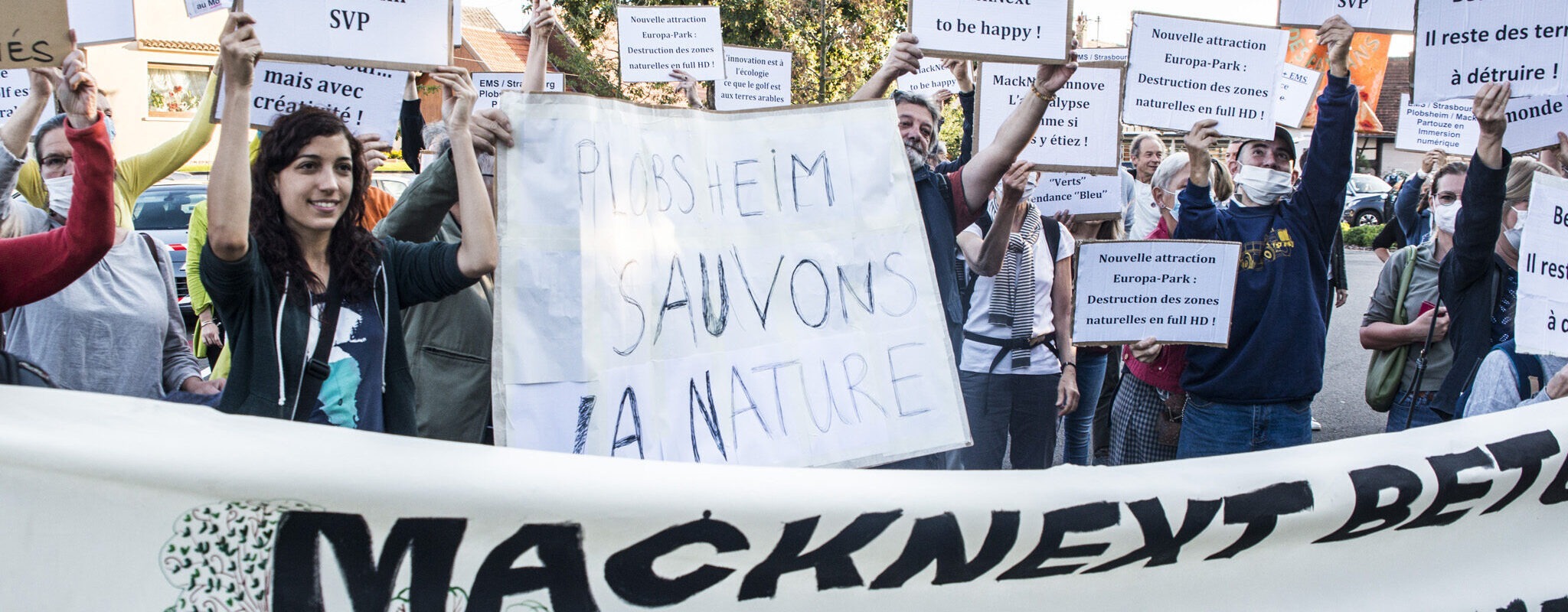 Vendredi 17 septembre, une centaine d'opposants au projet MackNext se sont réunis à Plobsheim. Le collectif portant la manifestation, le Chaudron des Alternatives, dénonce l'urbanisation évitable d'un site de 2,9 hectares de terres agricoles et d'espaces naturels. La maire de la commune soutient le projet du groupe d'Europa Park et se retranche derrière le respect des procédures administratives.