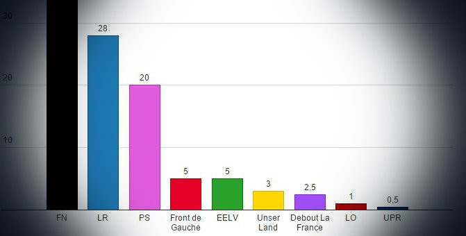 Un deuxième sondage estime que le Front national pourrait remporter la future grande région Alsace Lorraine Champagne Ardenne (ALCA) dont les élections se tiennent les 6 et 13 décembre. Au premier tour le Front national de Florian Philippot est placé en tête avec 35% des intentions de vote au premier tour, contre 29% pour la …