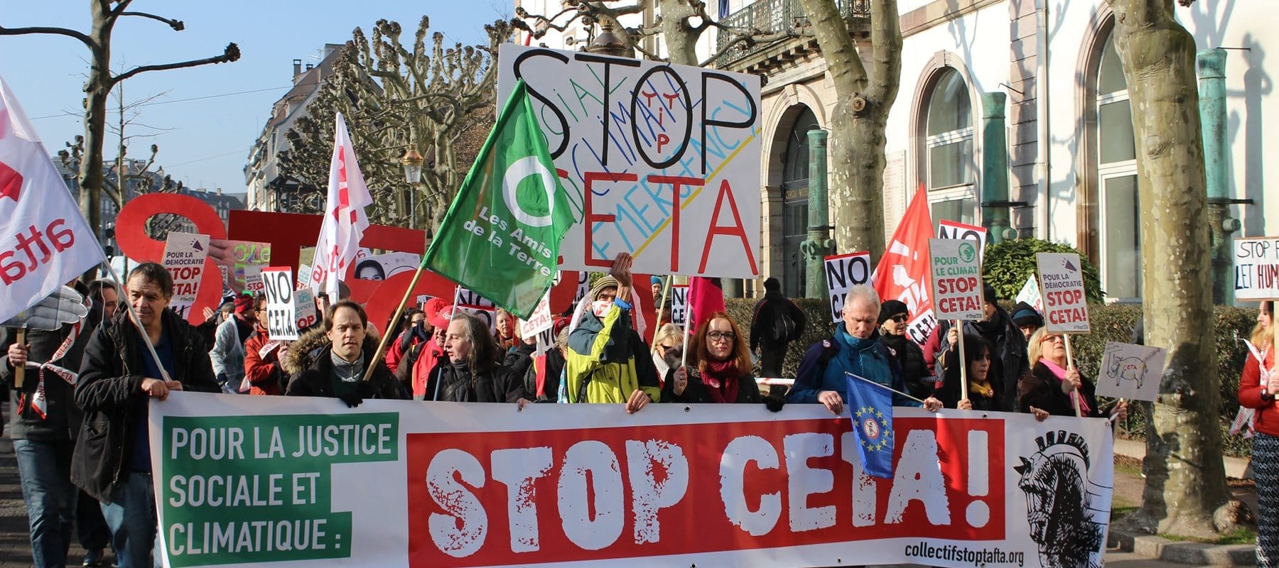 Un millier de personnes, 700 seulement selon la police, ont protesté contre la signature, mercredi par le Parlement européen, du traité de libre-échange entre la France et le Canada (CETA). Certains se sont rassemblés place Kléber, d'autres ont réalisé des happenings devant l'hémicycle européen.
