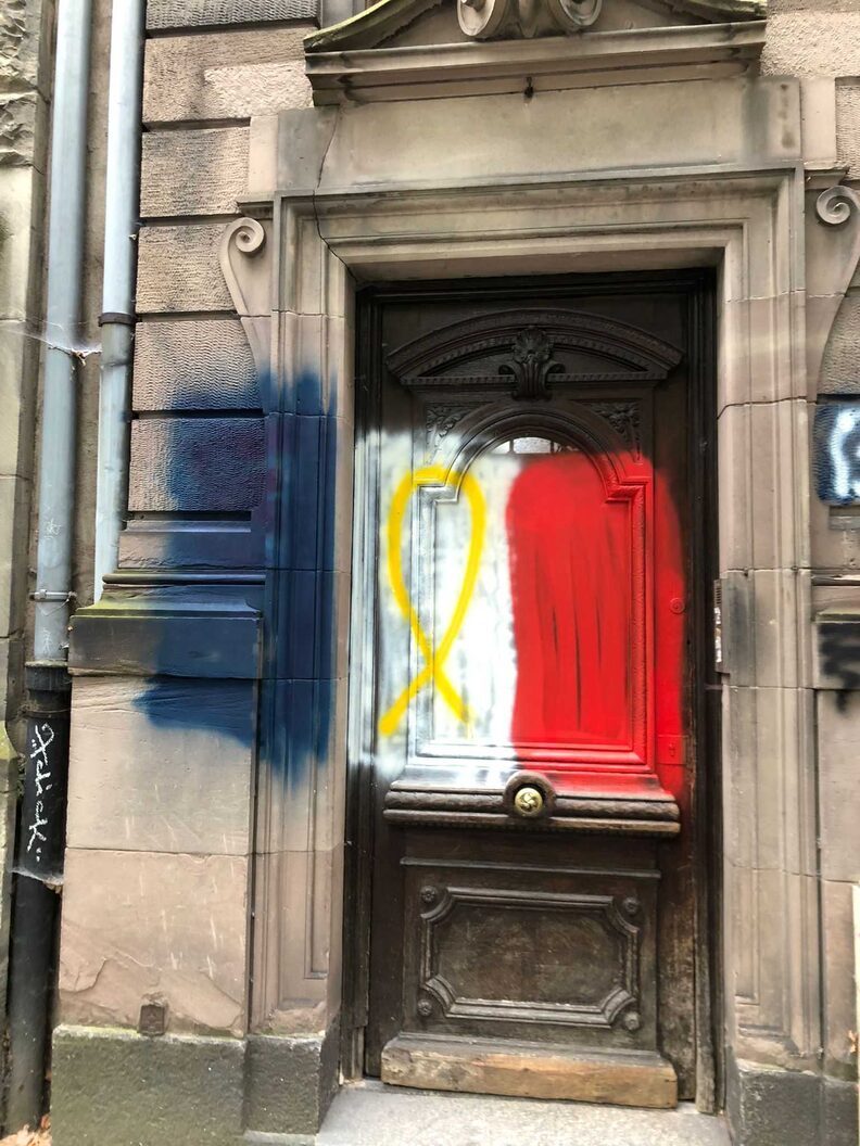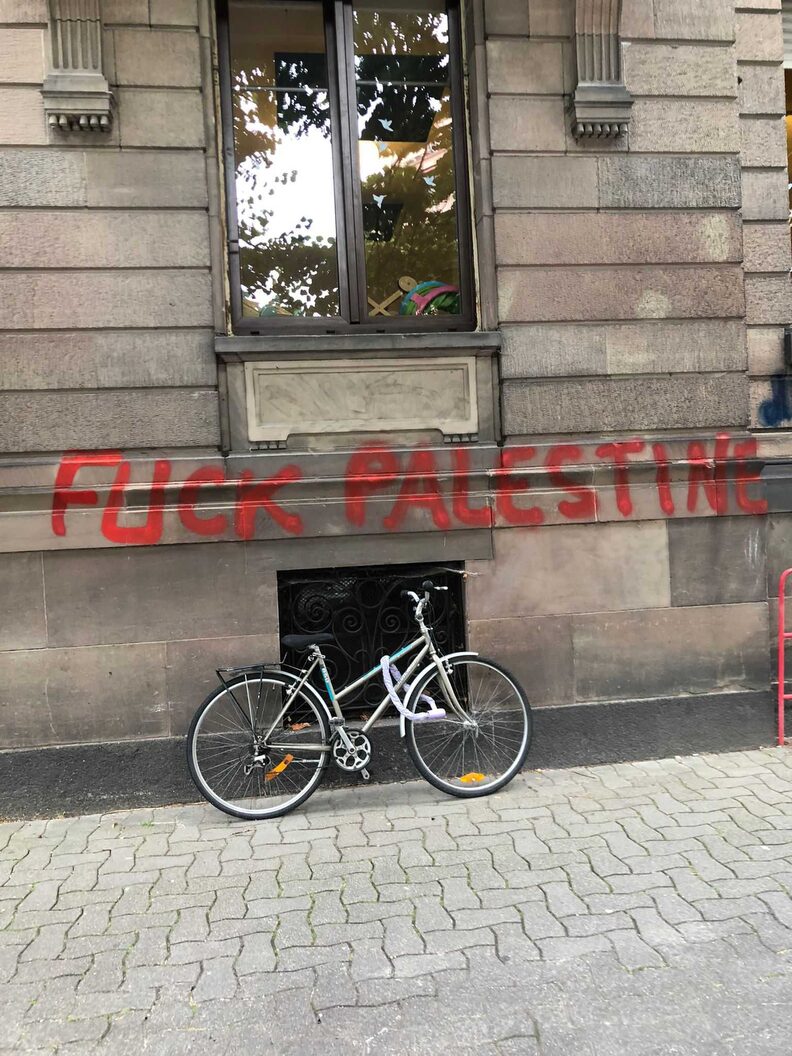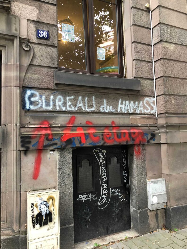 « Moi je suis habitué, j’ai tendance à minimiser. Pour mes colocs c’est différent… » Planté devant la façade de son immeuble, Gabriel regarde du coin de l’œil les marques du nettoyage effectué le matin même. Pour ce militant du collectif Urgence Palestine Strasbourg, c’est le dernier acte d’une escalade d’intimidations :