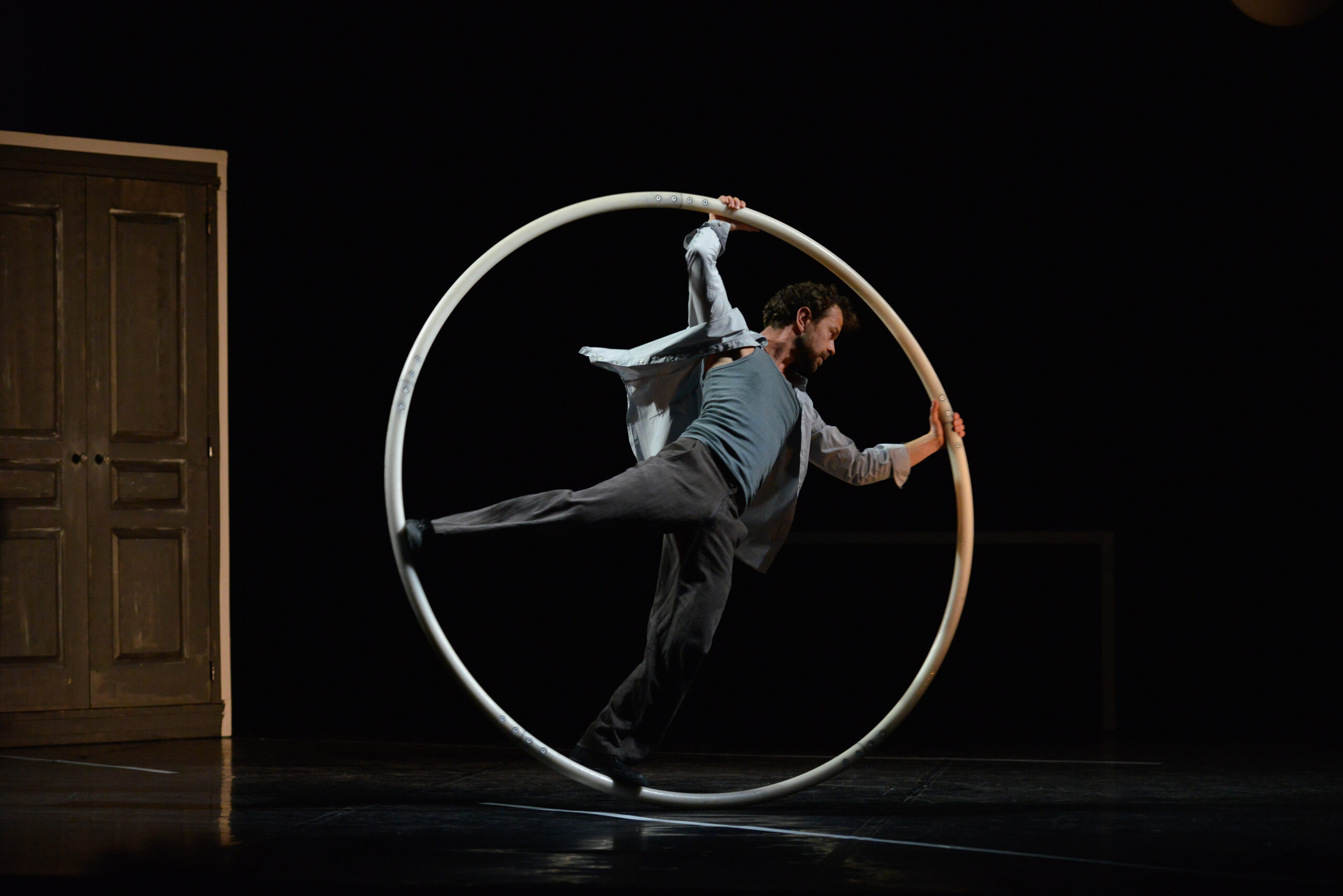 Alors qu’un homme, coincé dans le circuit d’une roue Cyr, se sent paralysé dans sa vie, il se dédouble et rencontre sa version jeune (un acrobate jongleur fougueux), et âgée (un vieux clown philosophe et funambule). Cette étonnante méditation sera jouée le jeudi 20 juillet à 19h au Taps Scala et est conseillée à partir de 9 ans.