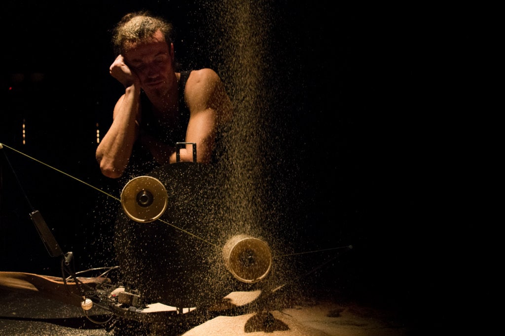 « Pour certaines figures, il faut beaucoup accélérer, c’est un gros effort physique. Je me suis demandé si je ne pouvais pas me servir d’une machine pour m’assister dans l’effort. Et puis pourquoi ne pas pas aller plus loin ? A force, je me suis rendu compte que je suivais la même évolution que le monde du travail : compartimentage des actions, dépendance des machines, efficacité… Puis-je créer des machines qui me remplacent ? »