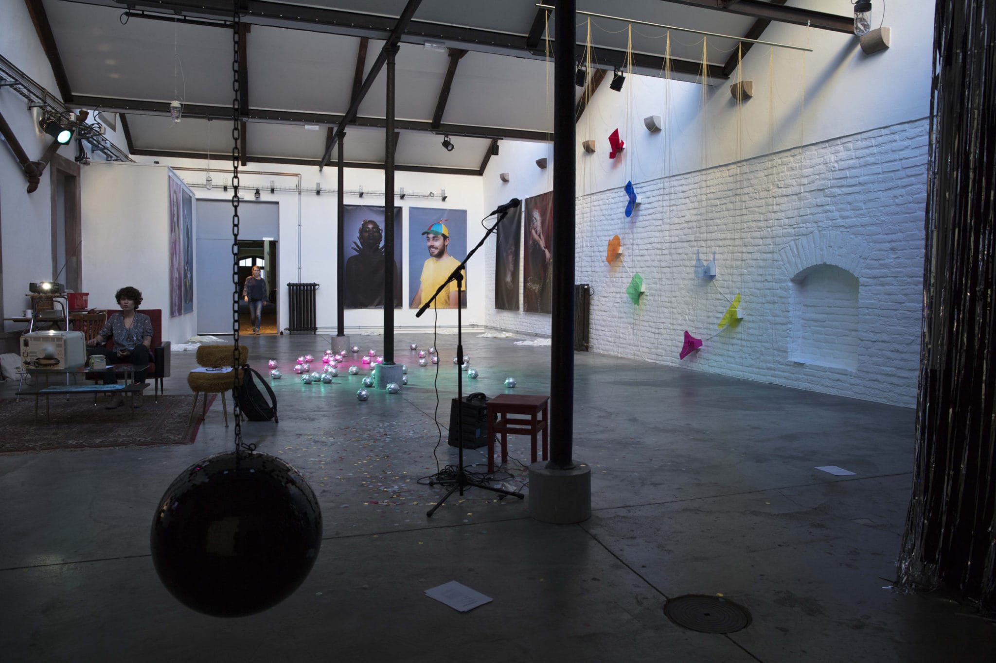 Les détournements des codes vestimentaires et des objets fétiches – comme la disco ball chez Jonathan Naas, le rétroprojecteur et les vinyles chez Marie Primard – constituent le fil rouge de l’exposition. Le parcours célèbre la liberté des formes et la multiculturalité en particulier dans Nyum Elucubris, une installation d’Anna Tjé qui entrelace religion, afro-futurisme et féminisme.