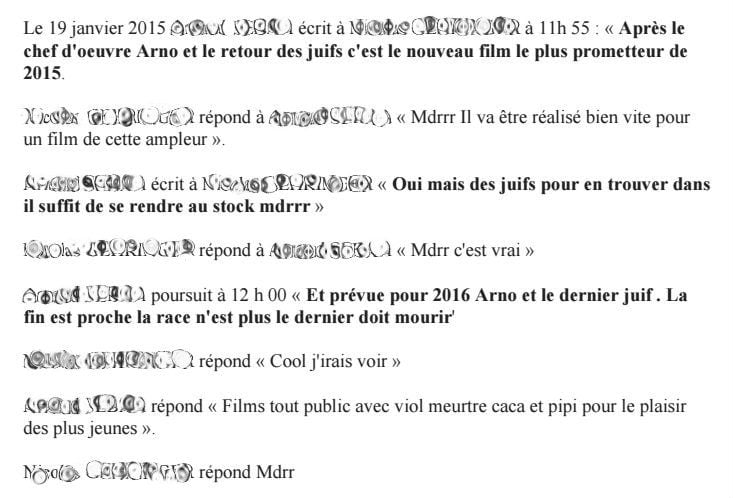 Dans l’un des échanges en janvier, il est question de « se rendre au stock » pour trouver des Juifs, ce qui laisse penser qu’au moins certains avaient l’intention de se rendre sur ces lieux selon certaines parties civiles.