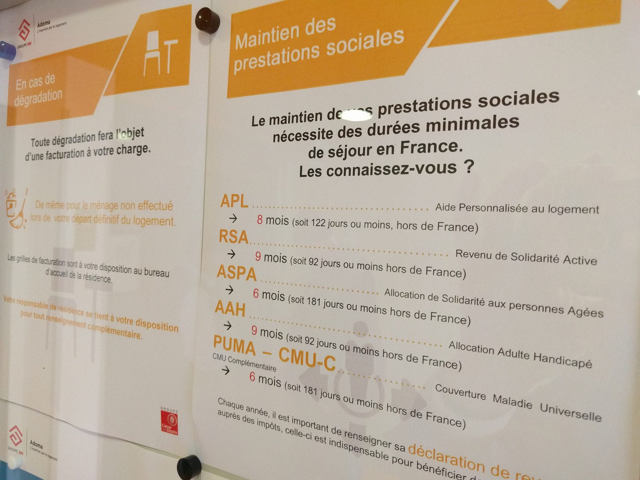Effectivement, dans un couloir, une affiche d’Adoma indique, en français, ces obligations de résidence. Mais la visite des contrôleurs des organismes prestataires a-t-elle été signalée aux résidents par le même biais ? Pour les locataires du foyer de la rue de Colmar, les relations avec leur bailleur sont complexes. Ils estiment là encore malmenés par Adoma, qui refuse les visites au-delà de 23 heures, supprime les espaces communs, réduit les équipements, etc. Rien que pour obtenir une salle pour la réunion d’octobre, les résidents ont dû forcer la main de leur responsable de site…