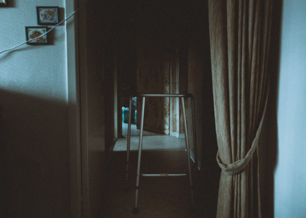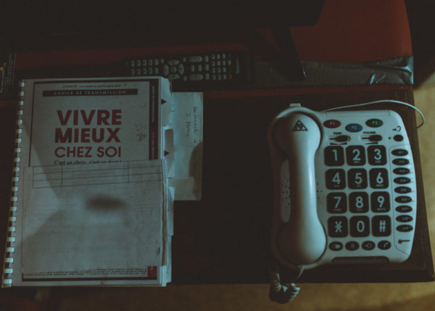 Robert se réveille dans son lit médicalisé, au pied d’un mur couvert de photos anciennes. Des portraits. Certains, en uniforme. Une collection de bibelots prend la poussière dans un buffet. Ici, Élise doit juste délivrer un médicament. Elle le prépare à table pendant qu’il arrive. « Hier soir, tu as mangé et tu as oublié de ranger », fait-elle remarquer en coulant un regard vers une table basse couverte de restes de repas. « Oui ». Dernier regard sur la pièce avant de partir. « N’oublie pas de manger avant de te recoucher. » « Oui oui. »