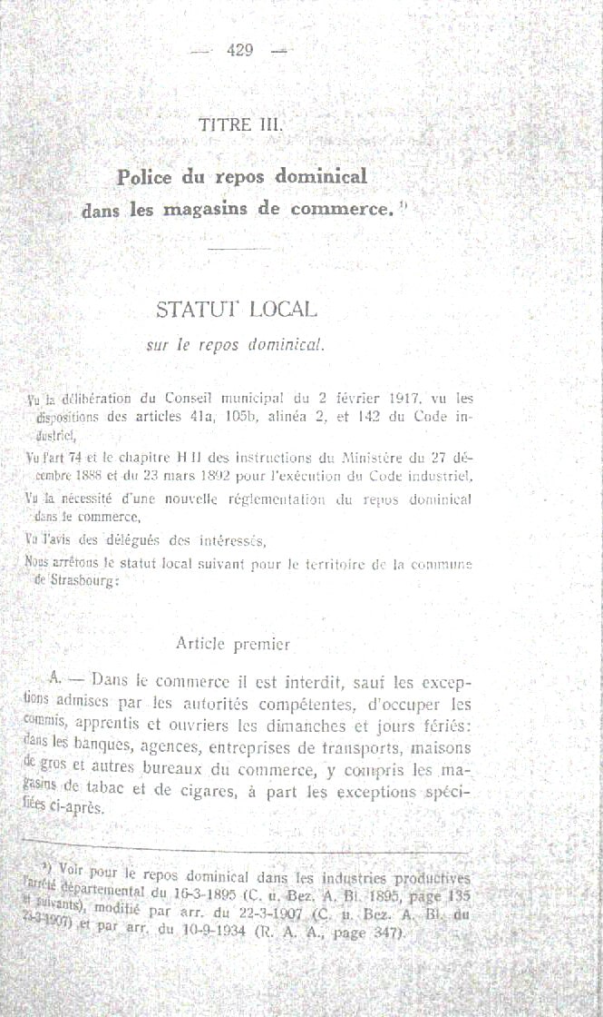 Voir le texte de 1917 « police du repos dominical »