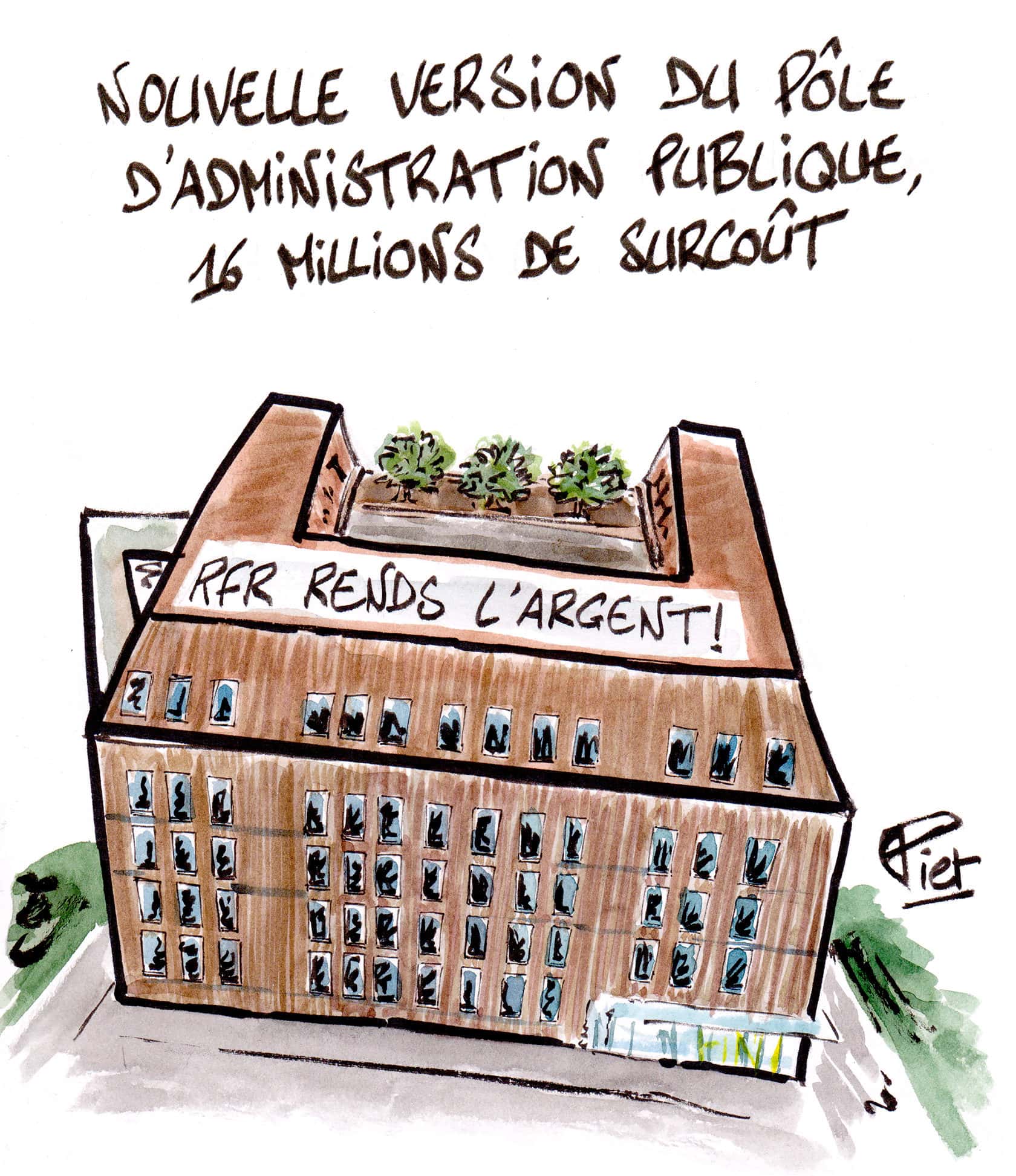 16.5 millions d’euros. C’est le surcoût des futurs Pôle d’Administration Publique (PAPS) et Pôle de Compétence de la Propriété Intellectuelle. Le chantier avait été mis à l’arrêt en 2014 après la découverte de fissures dans la structure en béton du bâtiment. Une somme qui sera difficilement récupérable, puisque le bureau d’étude mis en cause, RFR, a été placé en liquidation judiciaire. Les travaux devraient reprendre en juin, pour une mise en service espérée pour la rentrée de septembre 2019.