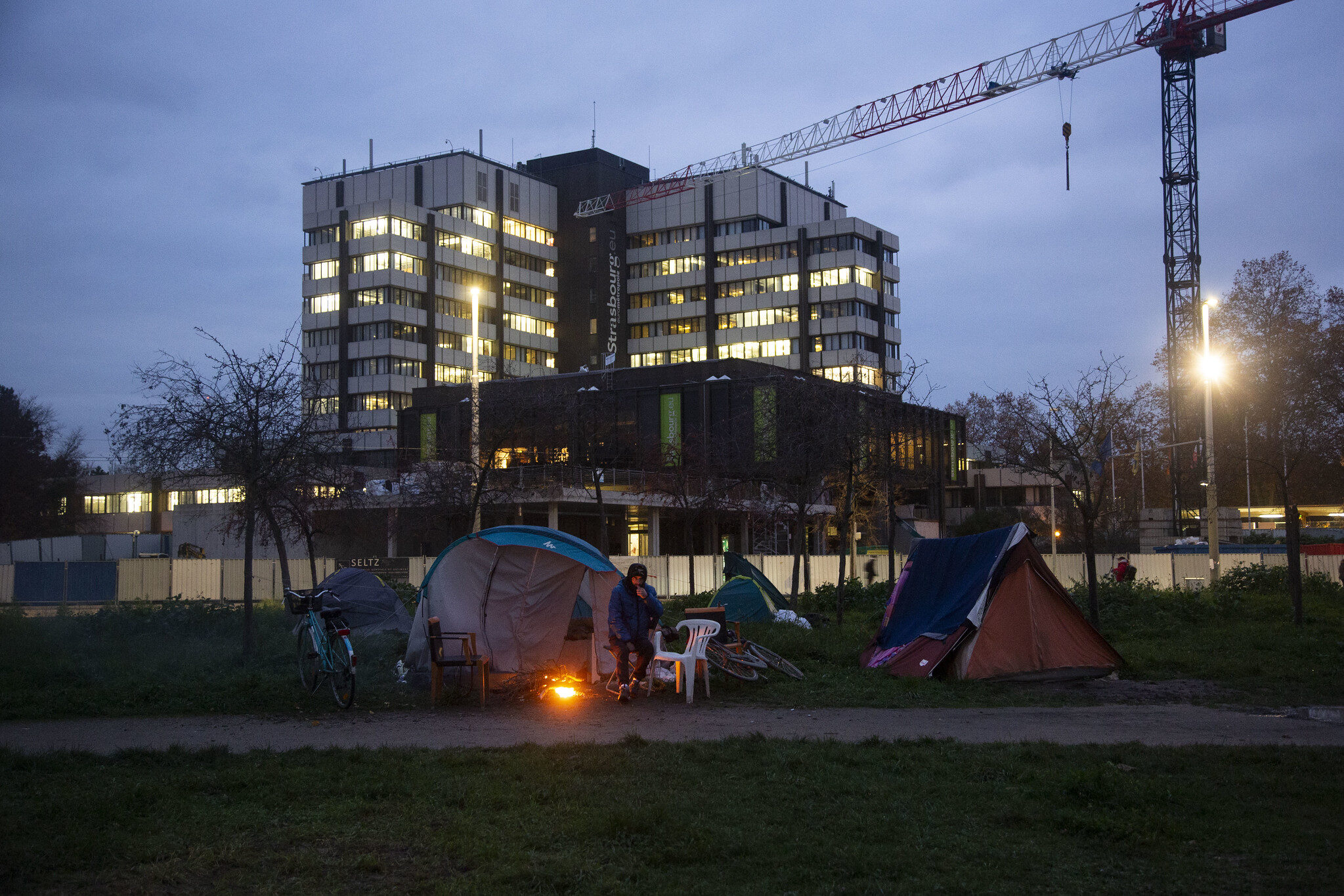 Jusqu’à présent, Jeanne Barseghian considérait qu’il n’était pas de son ressort de faire procéder à l’évacuation des quelques 80 personnes sans-abris, en majorité des demandeurs d’asile parfois en fin de droits, du parc de l’Étoile. La Ville avait tout de même procédé à un « diagnostic social », apporté de l’eau courante, proposé l’accès à des sanitaires et mis à l’abri les volontaires au gymnase du Heyritz puis dans un autre gymnase à la Meinau. L’hébergement d’urgence est pourtant à la charge de l’État, qui a l’obligation légale de proposer une solution aux étrangers, même sans titre de séjour.