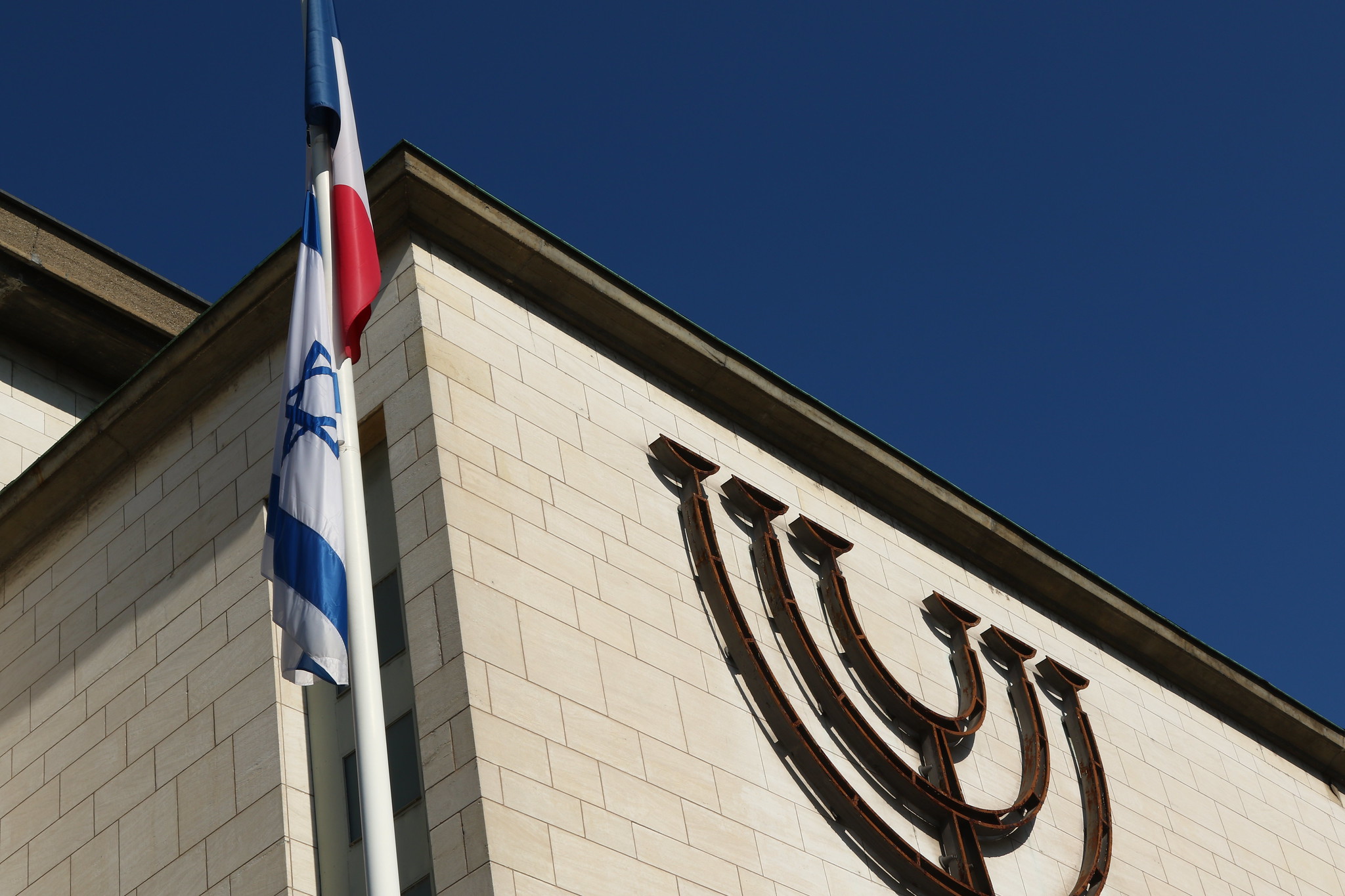 Depuis le pogrom du 7 octobre, le drapeau israélien flotte, avec le drapeau français, sur le mât de la Grande Synagogue de l’avenue de la Paix-Simone Veil.