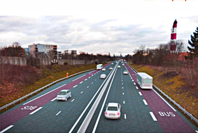 Photomontage de synthèse de la bande d'arrêt d'urgence réservée aux cars (document de l'enquête publique)