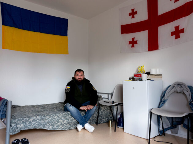 Après plusieurs semaines passées sur le camp de la place de l’Étoile, Makho, quadragénaire, est logé par l’État, en attendant que sa demande d’asile soit acceptée. « Je suis allé à l’accueil pour les Ukrainiens, mais ils ne m’ont offert que du thé », explique-t-il. Et pour cause : Makho est géorgien. Exit donc les procédures accélérées. Pourtant, il se bat pour l’Ukraine depuis six ans. Et s’il est là aujourd’hui, c’est que son état de santé ne lui permet plus de combattre les Russes.