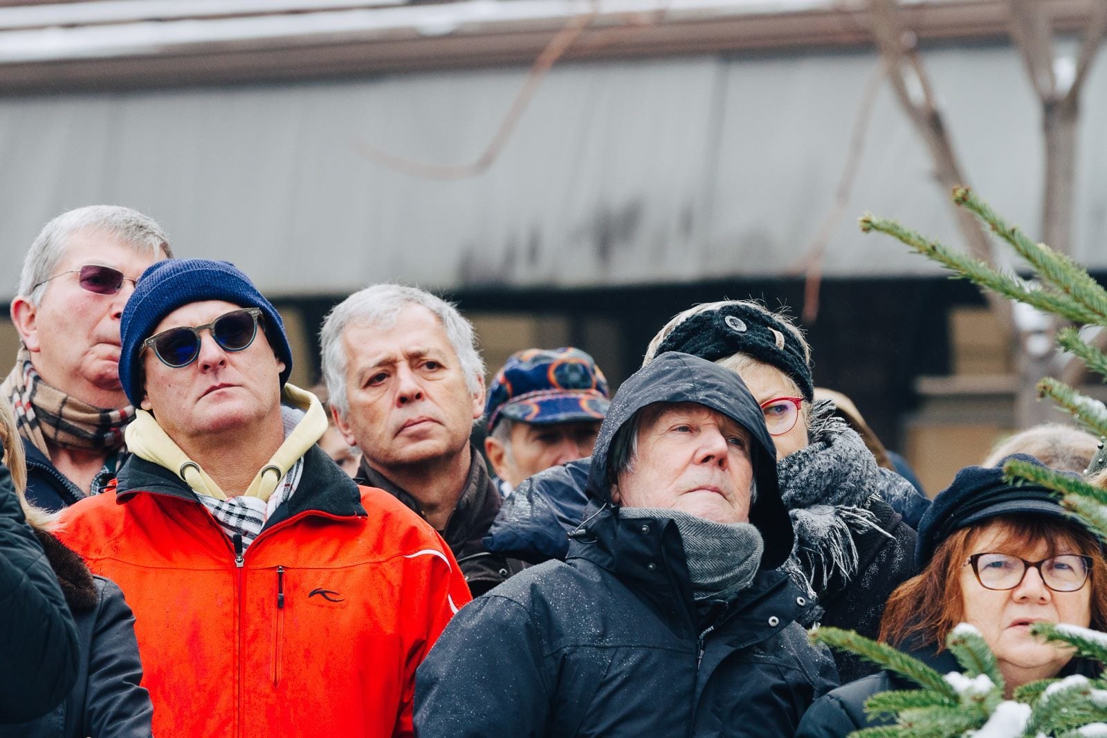 Pour panser la douleur, beaucoup d’artistes locaux ont répondu présents. Dans la foule, l’émotion est intense à l’écoute de Franck Georges qui reprend Imagine de John Lennon. Les enfants sur les épaules de leurs parents observent émerveillés leur premier matin de neige. Les adultes tentent de contenir leurs larmes. Tous n’y parviennent pas. Musiques et poésie libèrent les cœurs après une semaine éprouvante. En milieu de concert, les noms des quatre victimes décédées des balles de Cherif Cherkatt sont prononcés au micro dans un silence recueilli. La lecture d’un poème de l’écrivain franco-algérien Yahia Belaskri suit l’émouvante interprétation de Quand on n’a que l’amour de Jacques Brel par la chanteuse alsacienne Léopoldine HH.