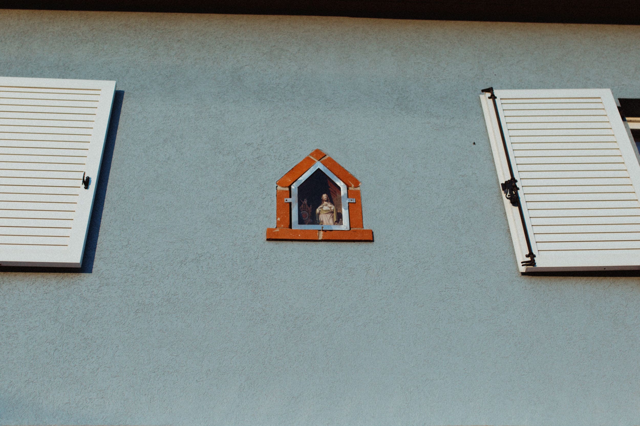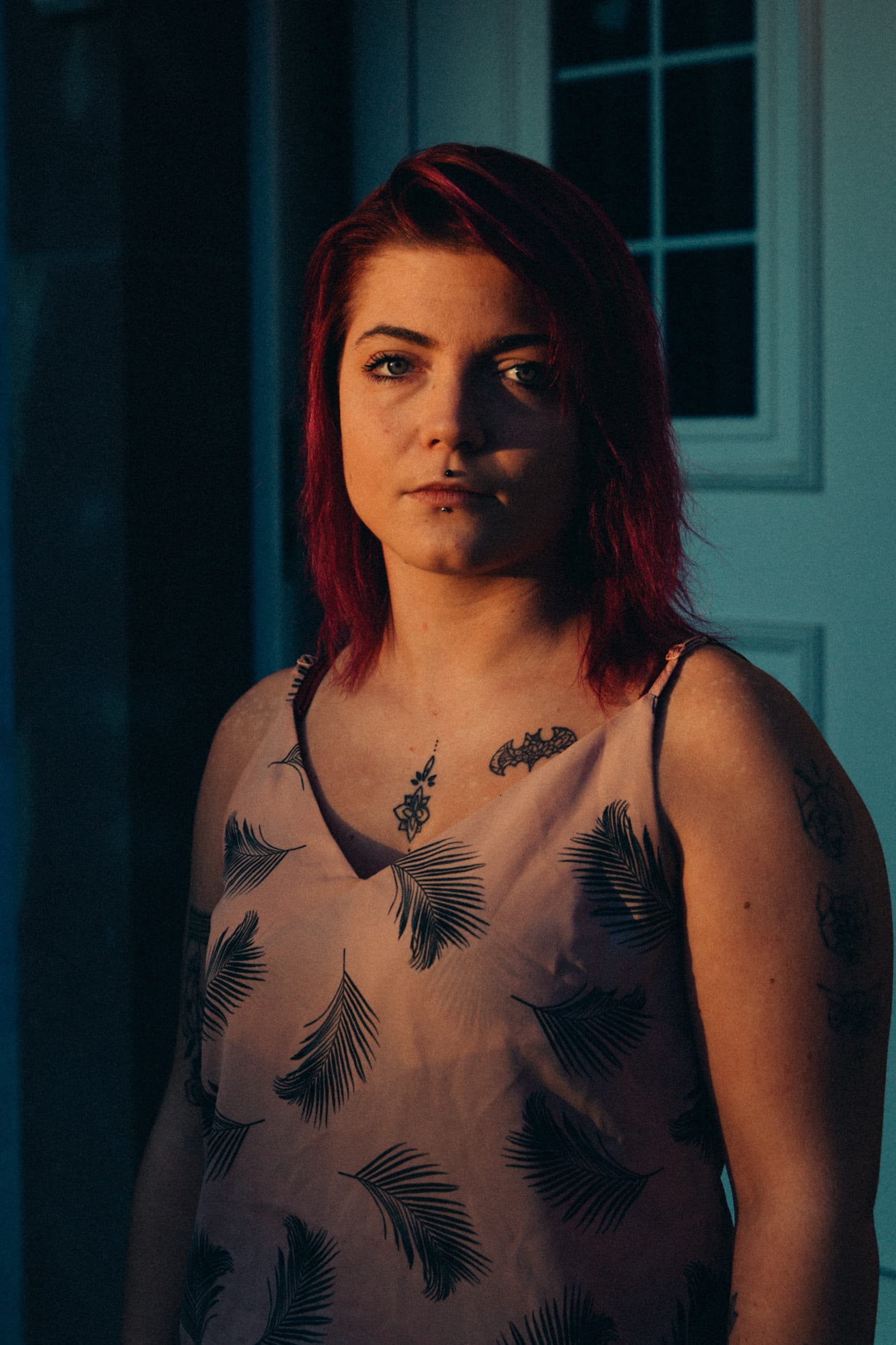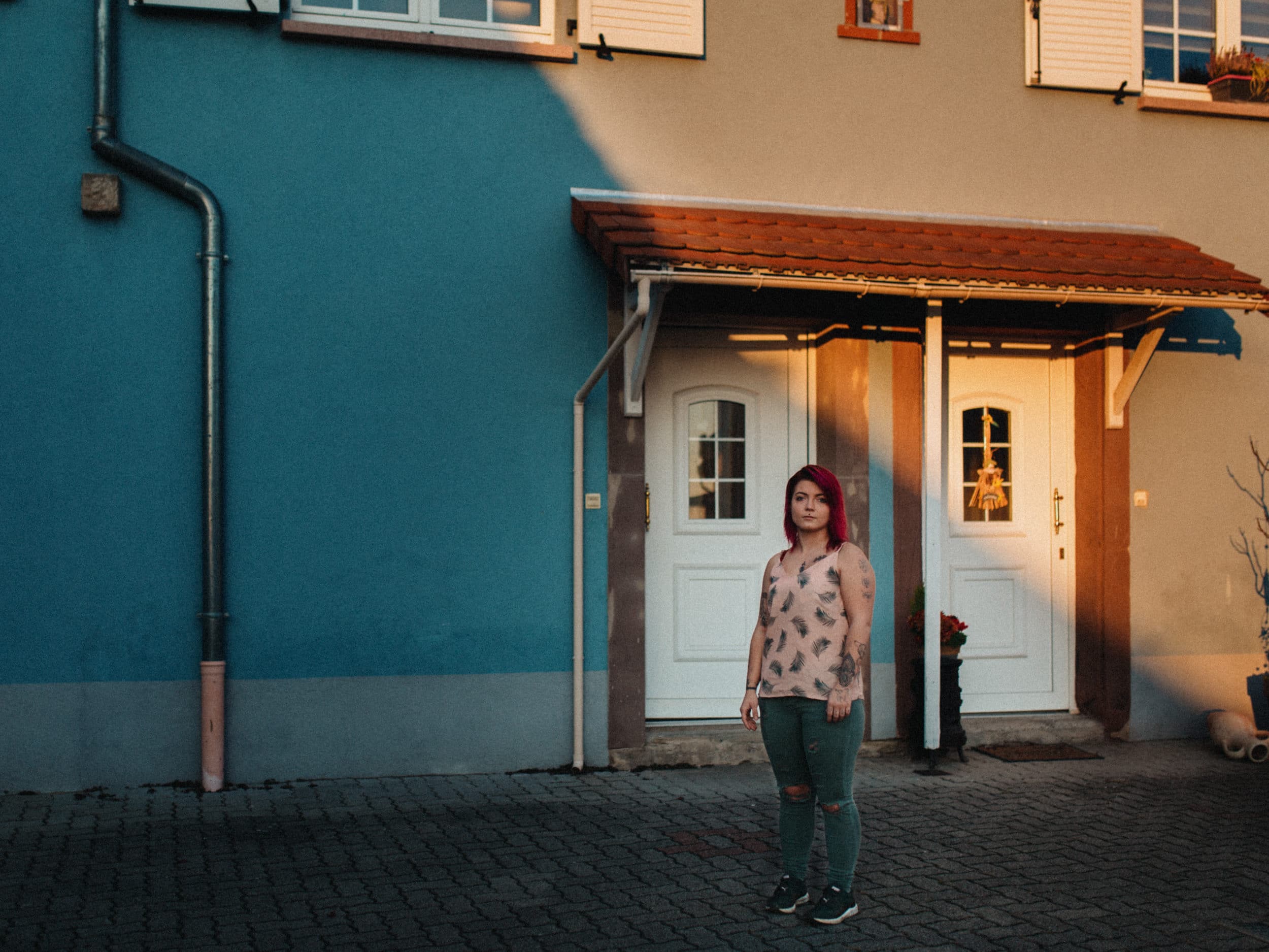 À la fenêtre de sa maison bleue à Mommenheim, une cigarette à la main, le regard lointain, elle semble pensive. Les dernières lueurs du soleil automnal illuminent ses cheveux roses vifs. Lorsqu’elle nous aperçoit, elle décroche un sourire. Au-dessus du perron, une effigie du Christ loge dans une petite niche vitrée. Stella était croyante. Mais depuis la mort de sa mère, la foi l’a quittée : « Dieu ne ferait pas des choses comme ça » confie-t-elle, résignée.