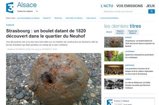 Sur un chantier de construction au Neuhof, des ouvriers sont tombés sur un boulet, datant d’environ 1820. Le terrain du Polygone était autrefois un champs d’entrainement pour l’artillerie.