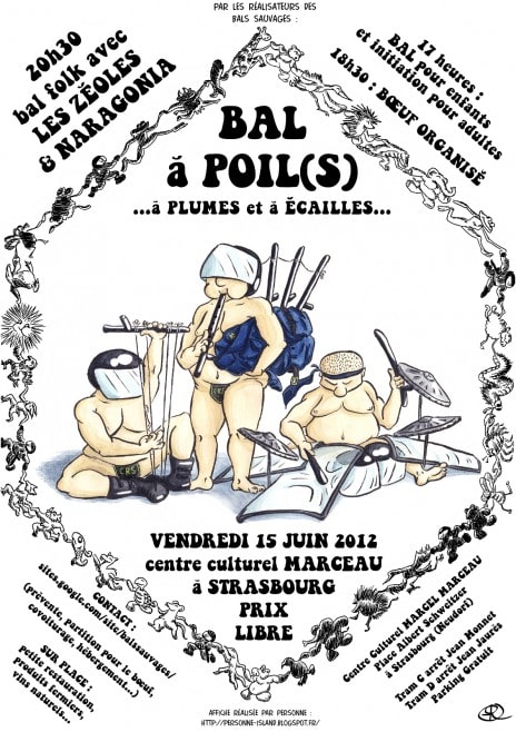 La soirée commencera dès 17h avec un bal pour enfants et une initiation à la danse pour adultes, à 18h30 une scène ouverte permettra à tous les volontaires de jouer et à 20h30, débutera le bal avec les groupes Naragonia et les Zeoles.