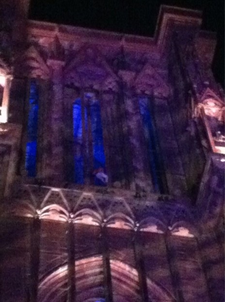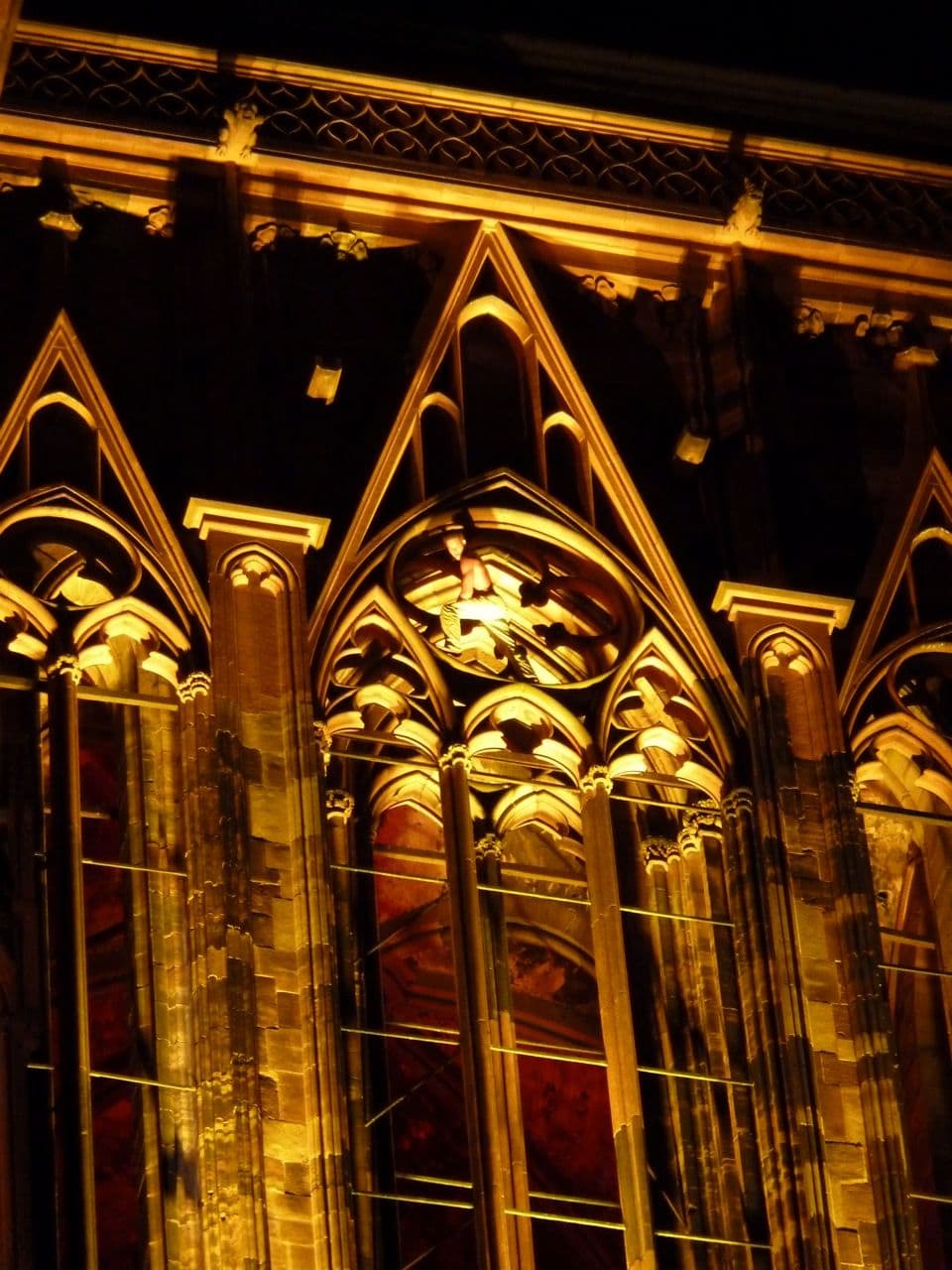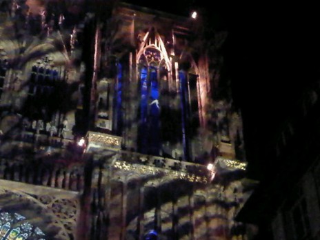 Lundi soir, un homme a escaladé la façade de la cathédrale en plein spectacle des illuminations vers 23h, selon plusieurs témoins, qui ont livré l’information sur Twitter. Guillaume Bechade (@GBechade) était présent parmi le public et a vu l’homme monter très rapidement :