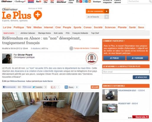 Ancien éditorialiste aux DNA, Olivier Picard livre son analyse sur l’échec du référendum. Pour lui, le « non » alsacien va plomber toute réforme institutionnelle en France :