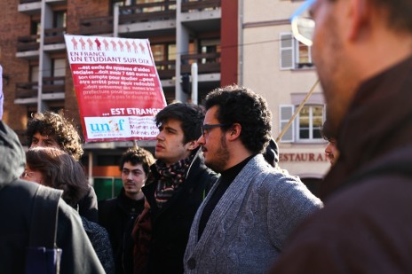 Une trentaine de personnes se sont rassemblées, ce mercredi devant le Crous de Strasbourg, pour protester contre les expulsions d’étudiants et de personnels enseignants étrangers. Les manifestants répondaient à l’appel lancé ce matin par plusieurs organisations syndicales enseignantes, dont le Snesup, et mettant en cause directement le directeur du Crous, Christian Chazal. Des représentants ont …