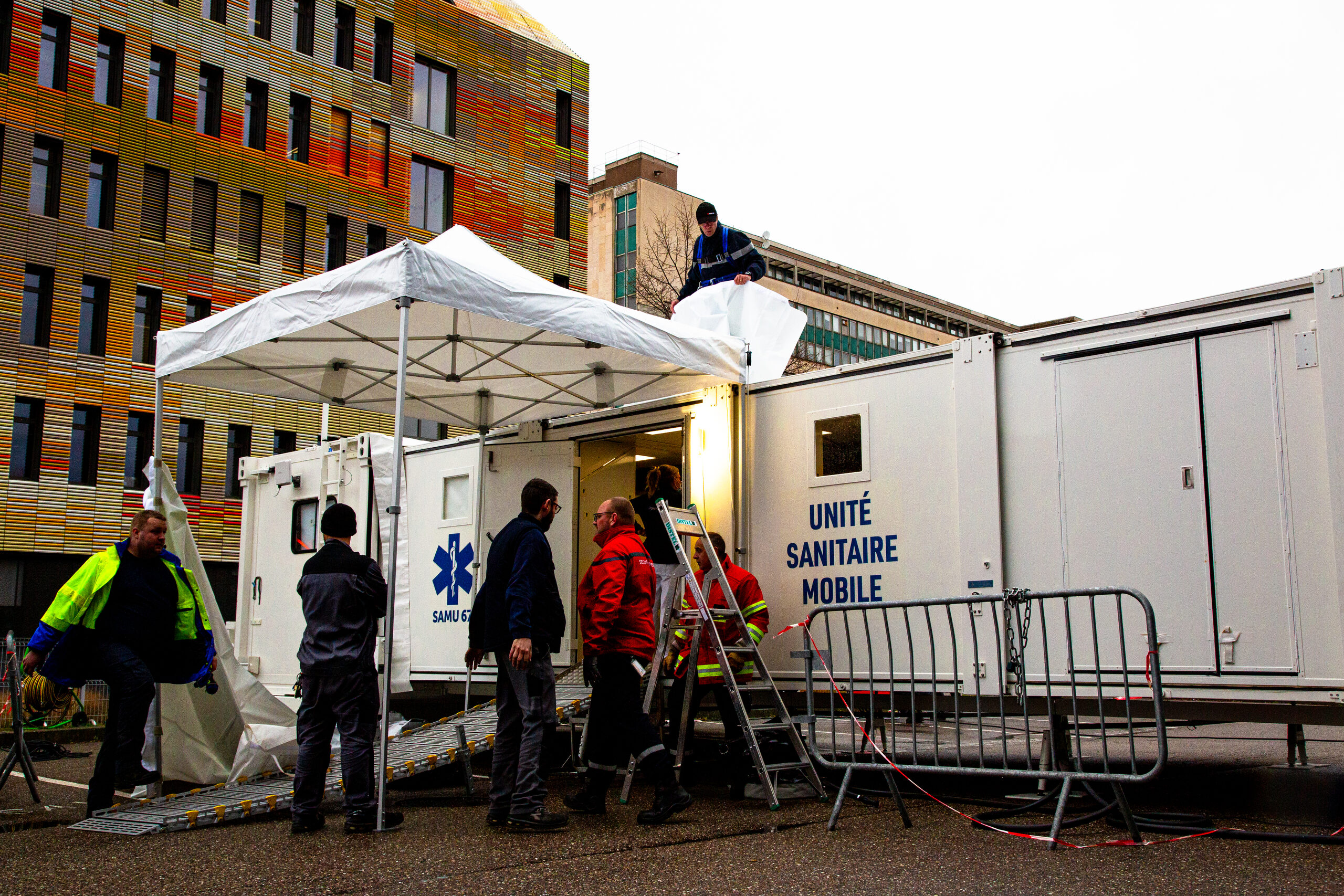 Des lits d’hôpital alignés dans un immense hangar inutilisé. Des malades qui se plaignent de la chaleur étouffante ou de l’interminable attente avant leur prise en charge. Nous ne sommes pas de retour en 2021 en pleine pandémie de Covid-19, mais bien à l’été 2024 aux urgences de l’hôpital de Colmar. « C’était le 1er septembre, sans doute notre pire week-end, se remémore Éric Thibaud, médecin urgentiste et chef de service aux urgences de Colmar. On avait 50 patients à la fois alors que le service peut en compter 35 ».