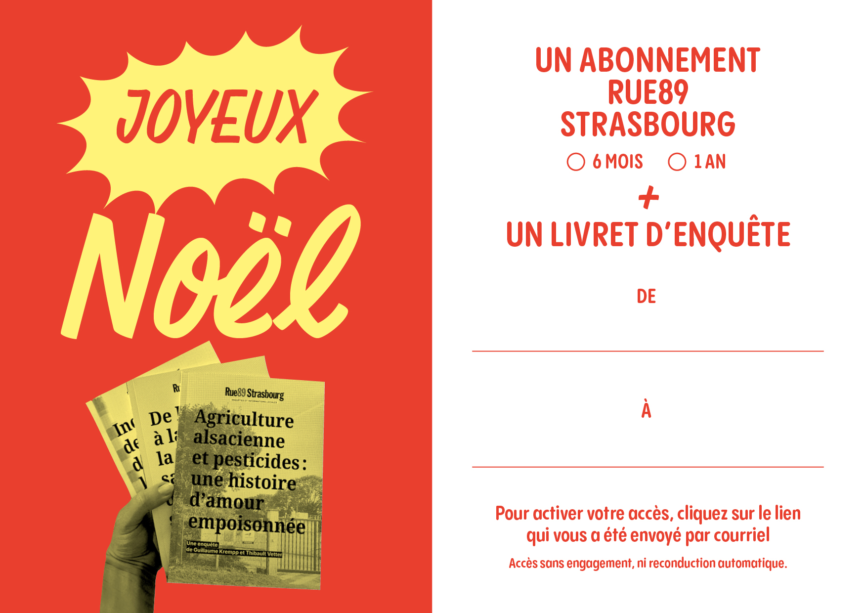 Cette année, Rue89 Strasbourg vous propose d’offrir nos livrets d’enquête avec un abonnement de six mois ou un an.