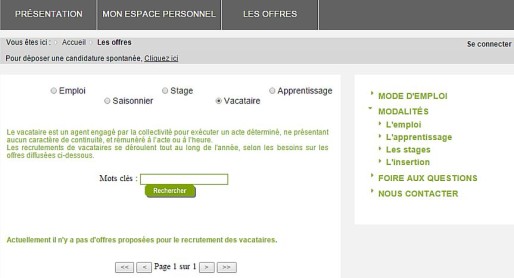 Des situations auxquelles les ressources humaines ne veulent plus faire face. Le site de la CUS ne recense plus une seule annonce pour vacataire (capture d’écran effectuée vendredi 12 décembre) :