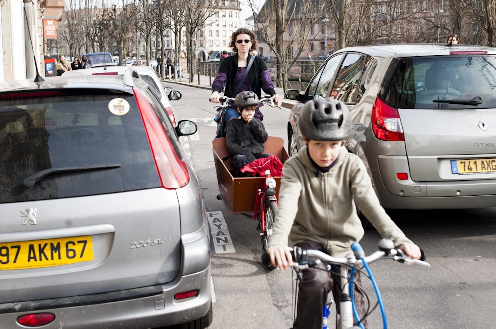 Pour d’autres (dont l’auteur de l’article), on casse sa tirelire, met sa famille à contribution et fait une croix sur l’utilisation – devenue épisodique – de la voiture. Quand au rangement du cargo, la question reste posée. Les bailleurs sociaux, assurent-on à la Ville, aménagent systématiquement dans les nouveaux immeubles des garages à vélos. Les locataires du parc privé, eux, font soit dormir leur cargo dehors (avec deux ou trois cadenas, dont un relié à un point fixe !) soit négocient un coin de cour ou de local à poubelles. Pour mettre toutes les chances de son côté pour décourager les voleurs, il est essentiel également de faire marquer son vélo au CADR67 (4€) et de se renseigner sur les antivols performants (antivols pliants ou en U).
